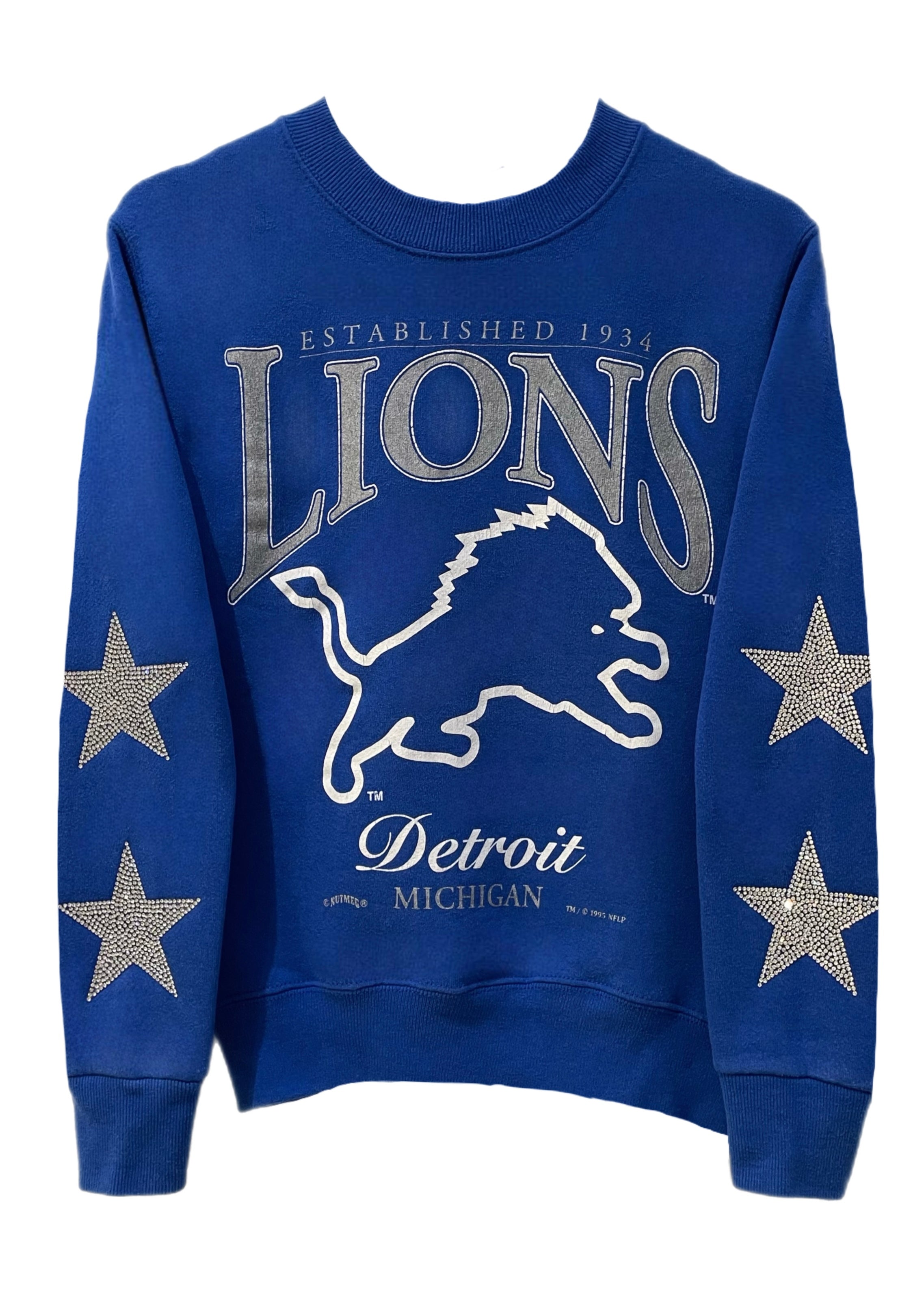 Detroit Lions, Football One of a KIND Vintage Sweatshirt with Crystal Star Design