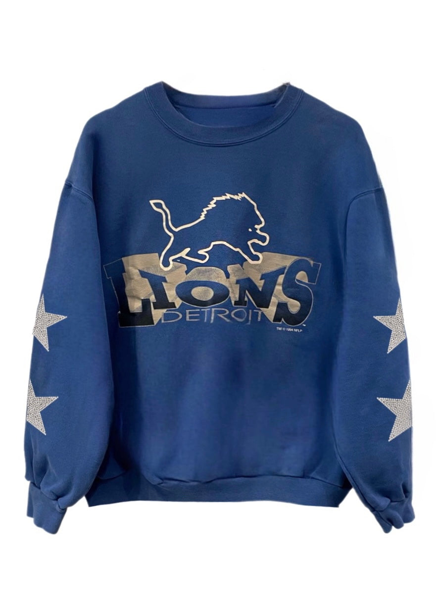 Detroit Lions, Football One of a KIND Vintage Sweatshirt with Crystal Star Design