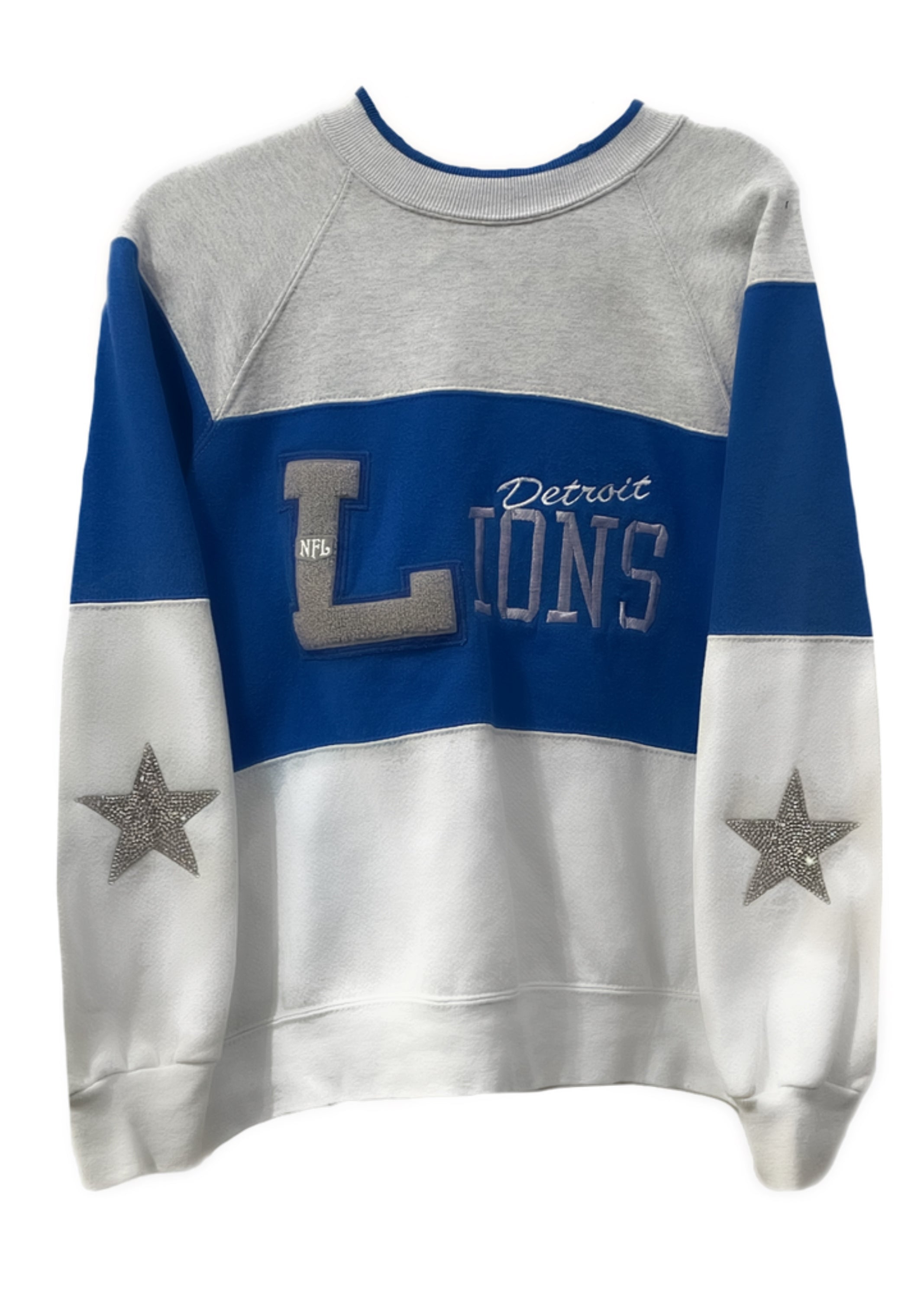Detroit Lions, Football One of a KIND Vintage Sweatshirt with Crystal Star Design.