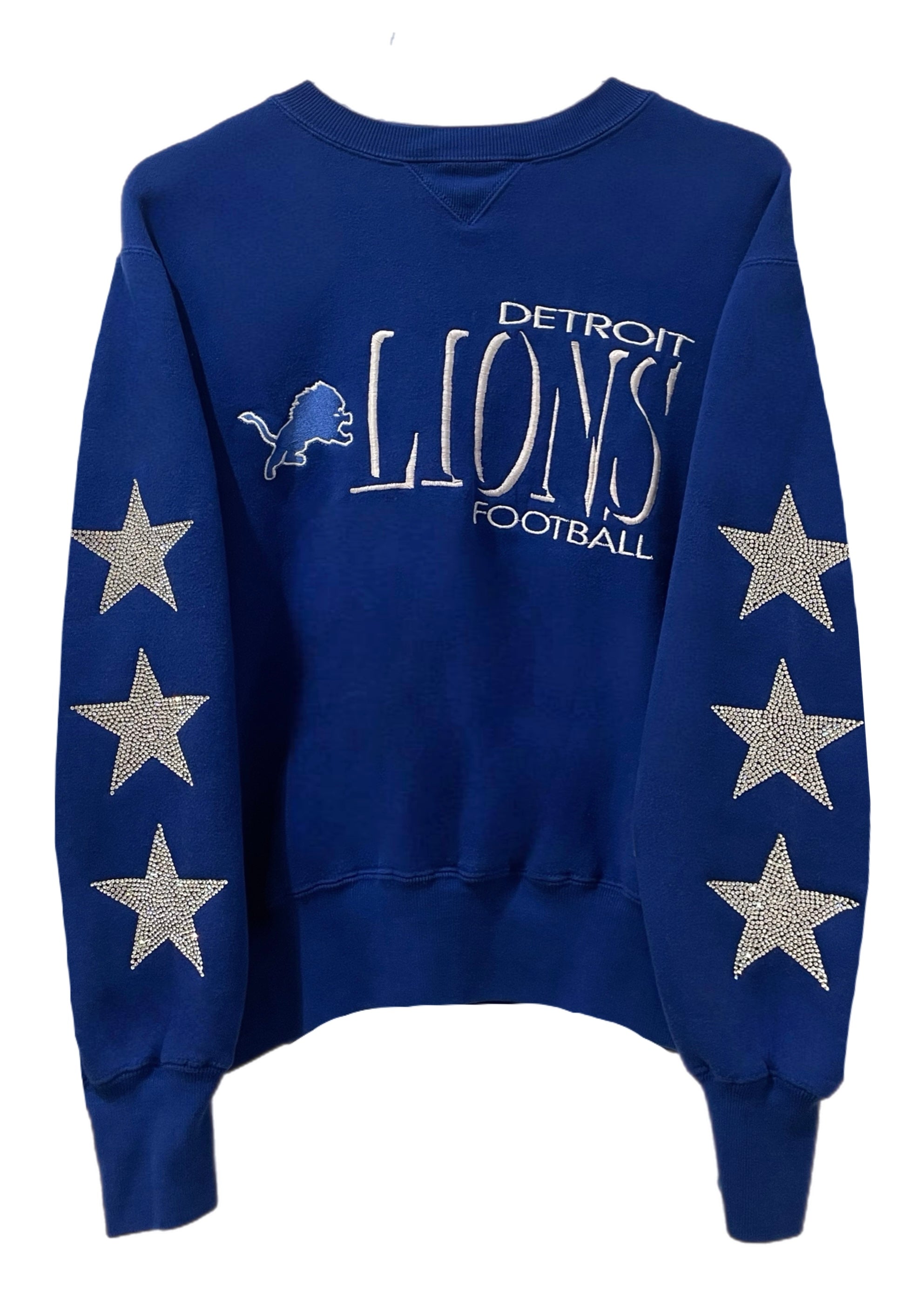 Detroit, Lions, Football One of a KIND Vintage Sweatshirt with Three Crystal Star Design