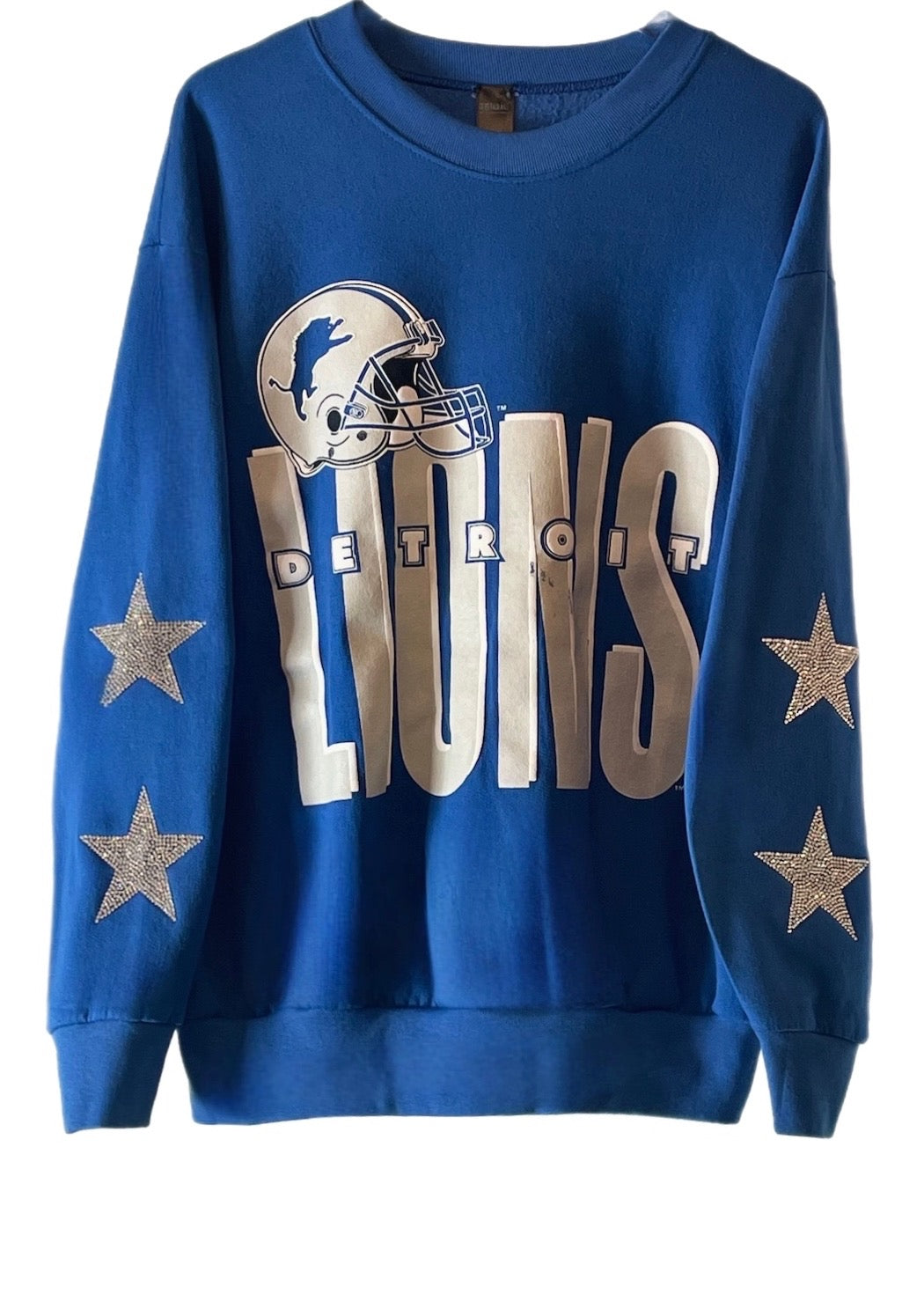 Detroit Lions, Football One of a KIND Vintage Sweatshirt with Crystal Star Design