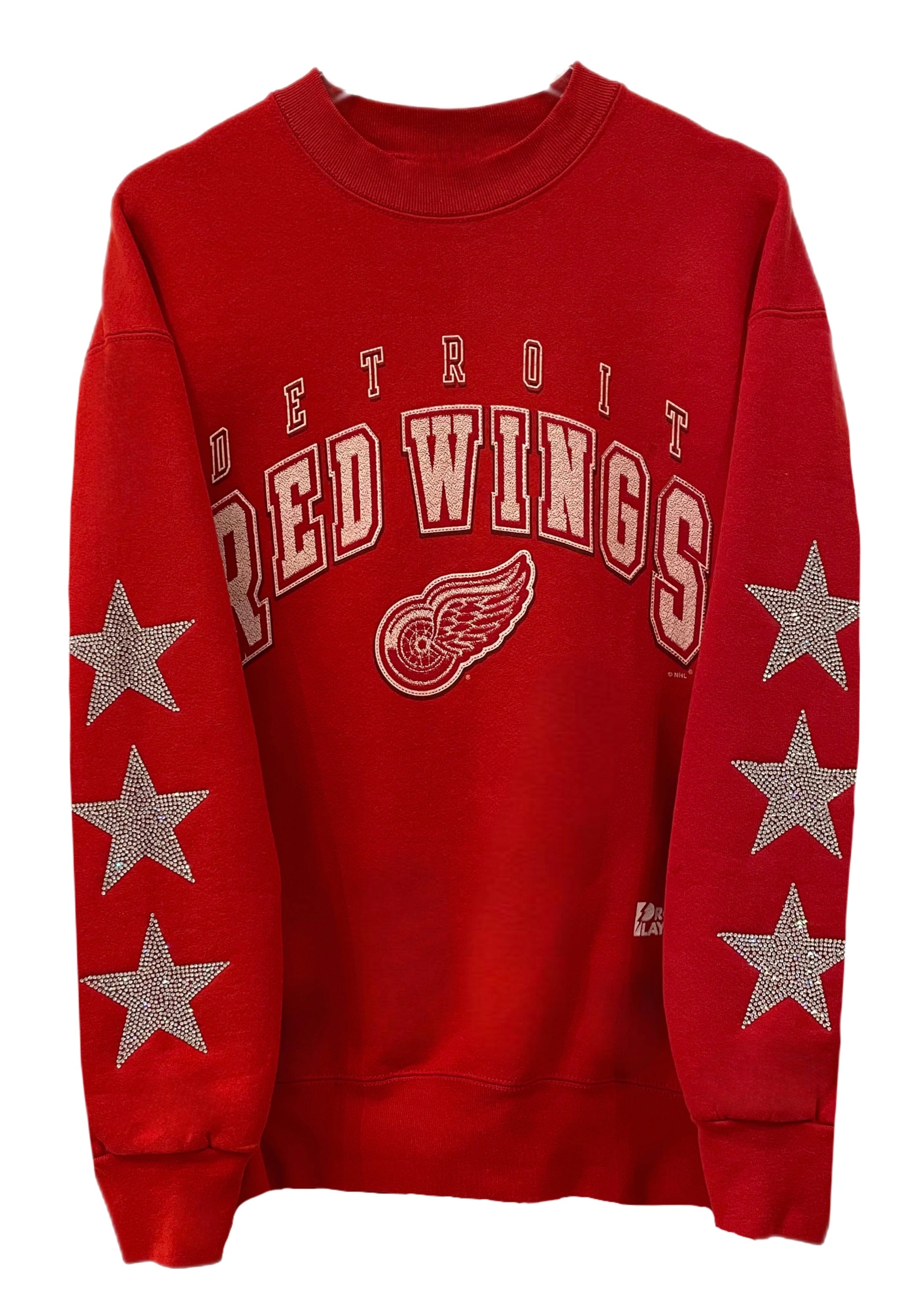 Detroit Red Wings, Hockey One of a KIND Vintage Sweatshirt with Three Crystal Star Design.
