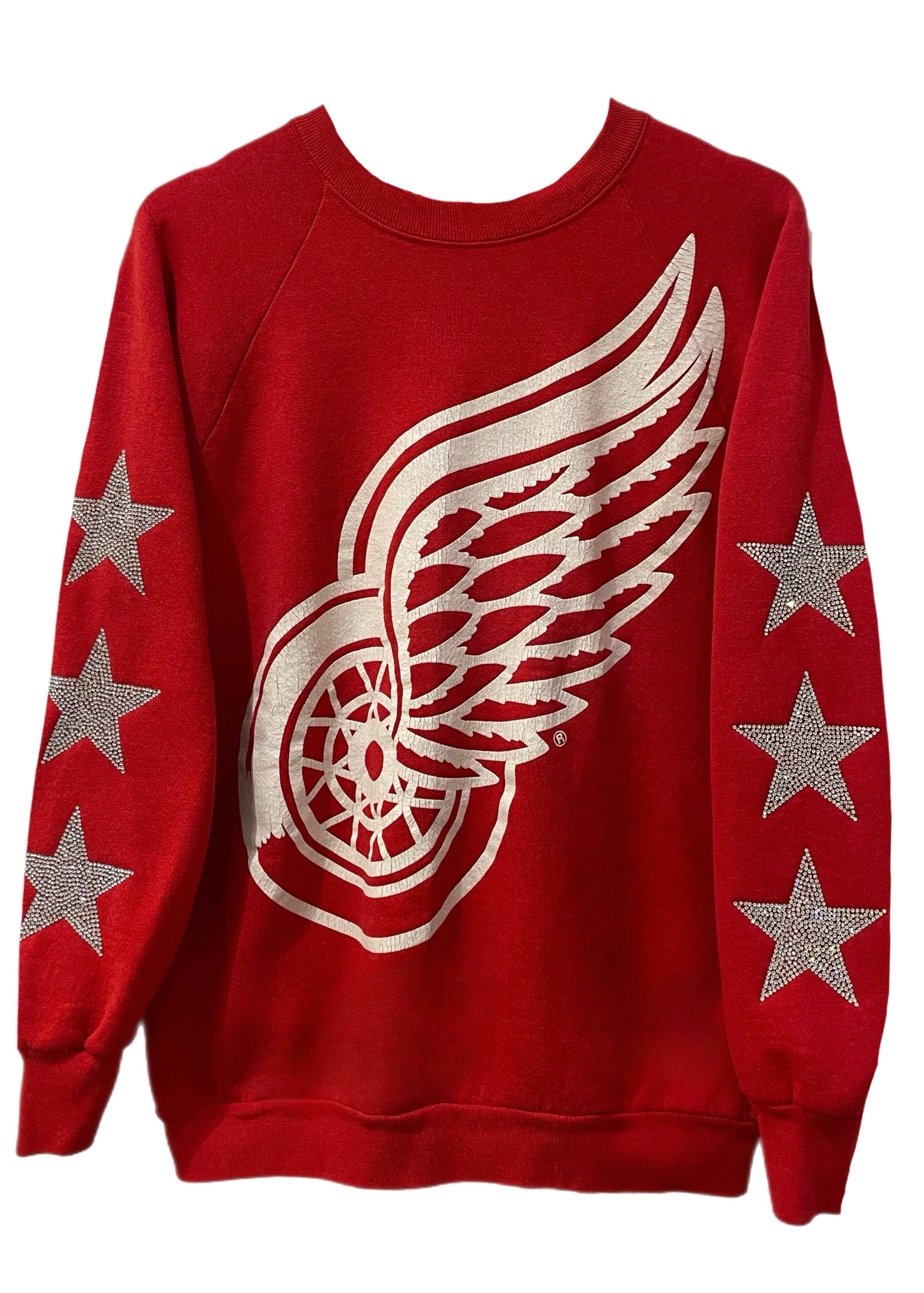 Detroit Red Wings, Hockey One of a KIND Vintage 1990’s Sweatshirt with Three Crystal Star Design. - Soft, frayed & oversized depending on the person