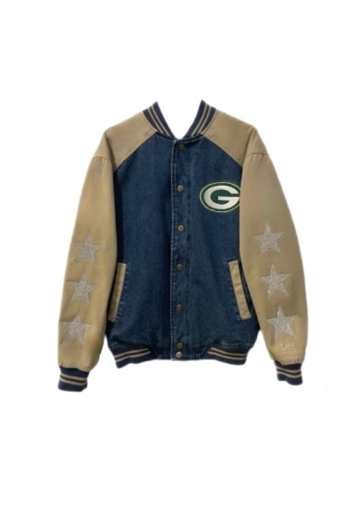 Green Bay Packers, Football One of a KIND Vintage Jacket with Three Crystal Star Design with Custom Number