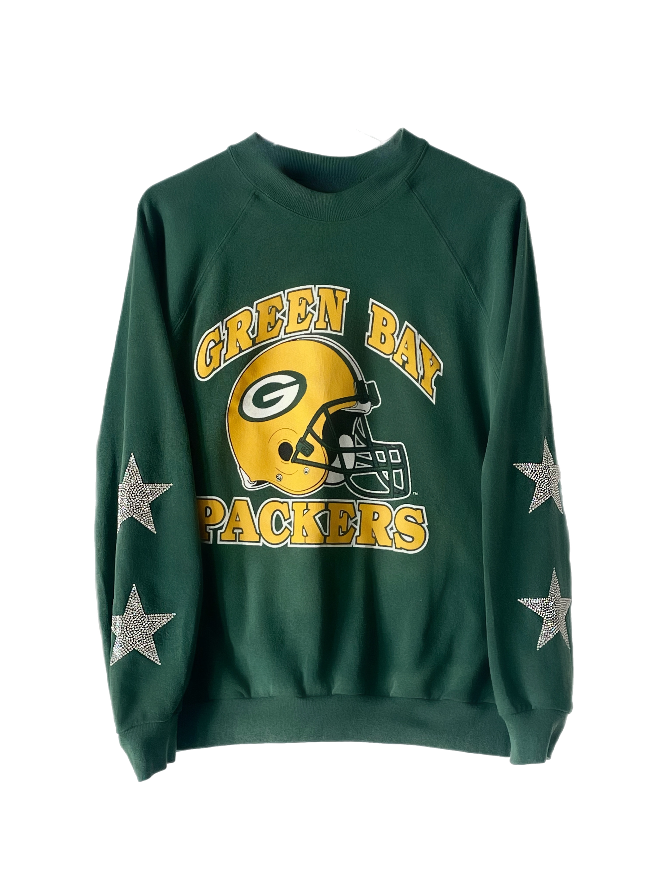 Green Bay Packers, Football One of a KIND Vintage Sweatshirt with Crystal Star Design