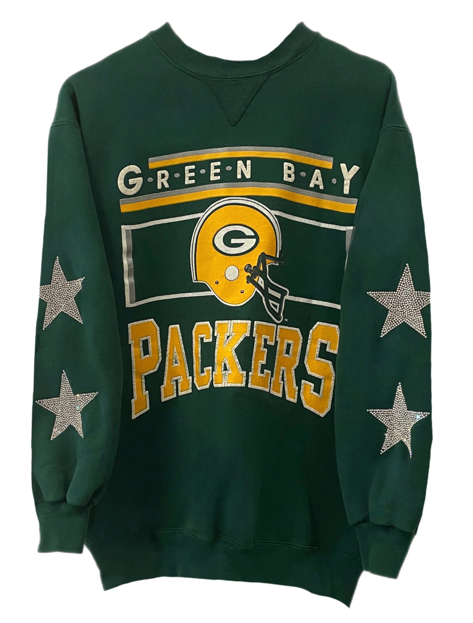 Green Bay Packers, Football One of a KIND Vintage Sweatshirt with Crystal Star Design