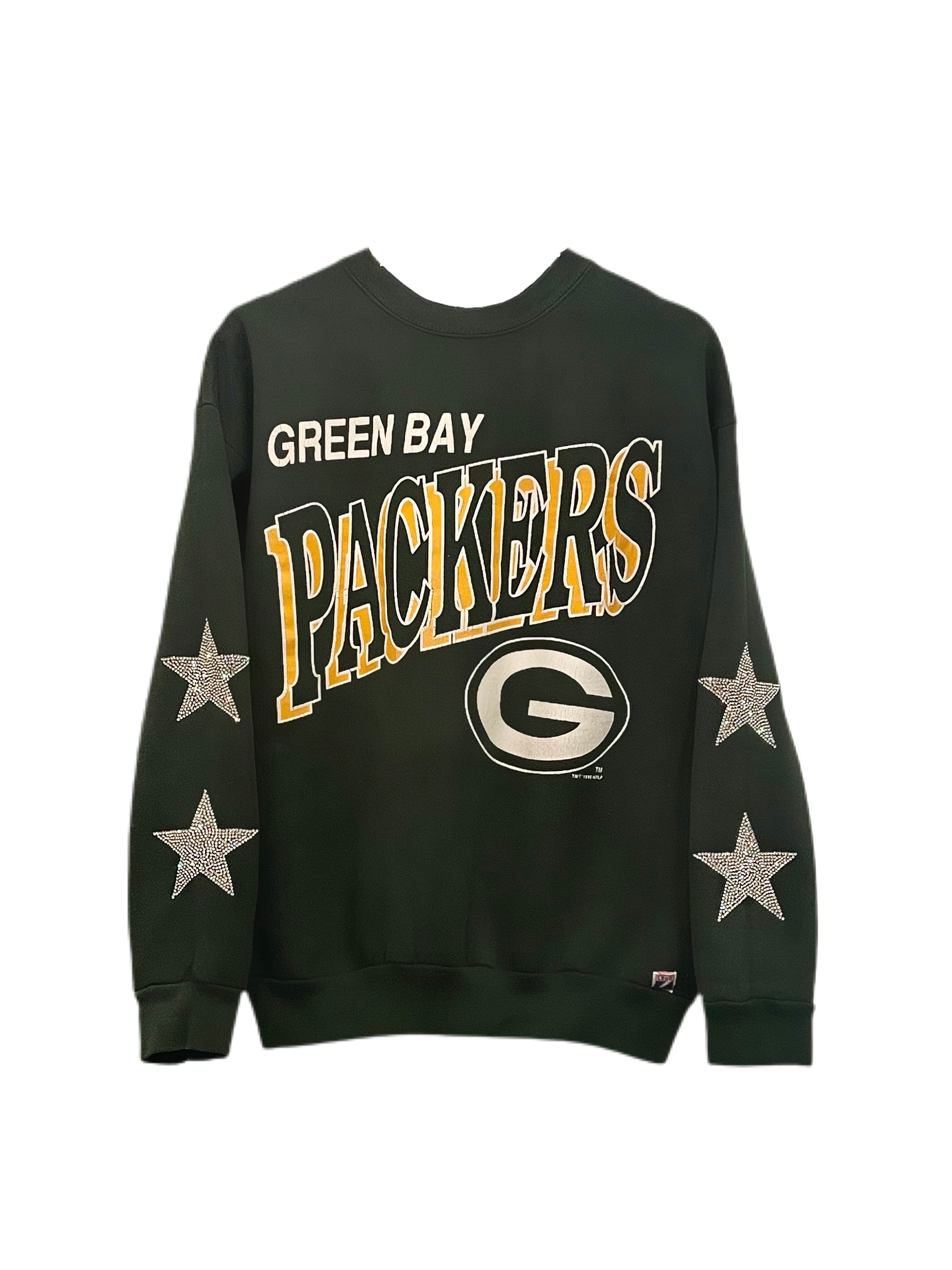 Green Bay Packers, Football One of a KIND Vintage Sweatshirt with Crystal Star Design