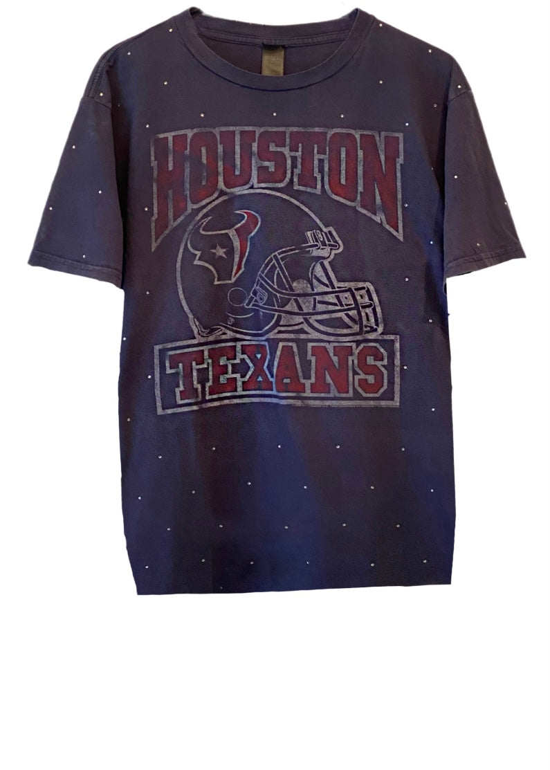 Houston Texans, Football One of a KIND Vintage Tee with Overall Crystal Design