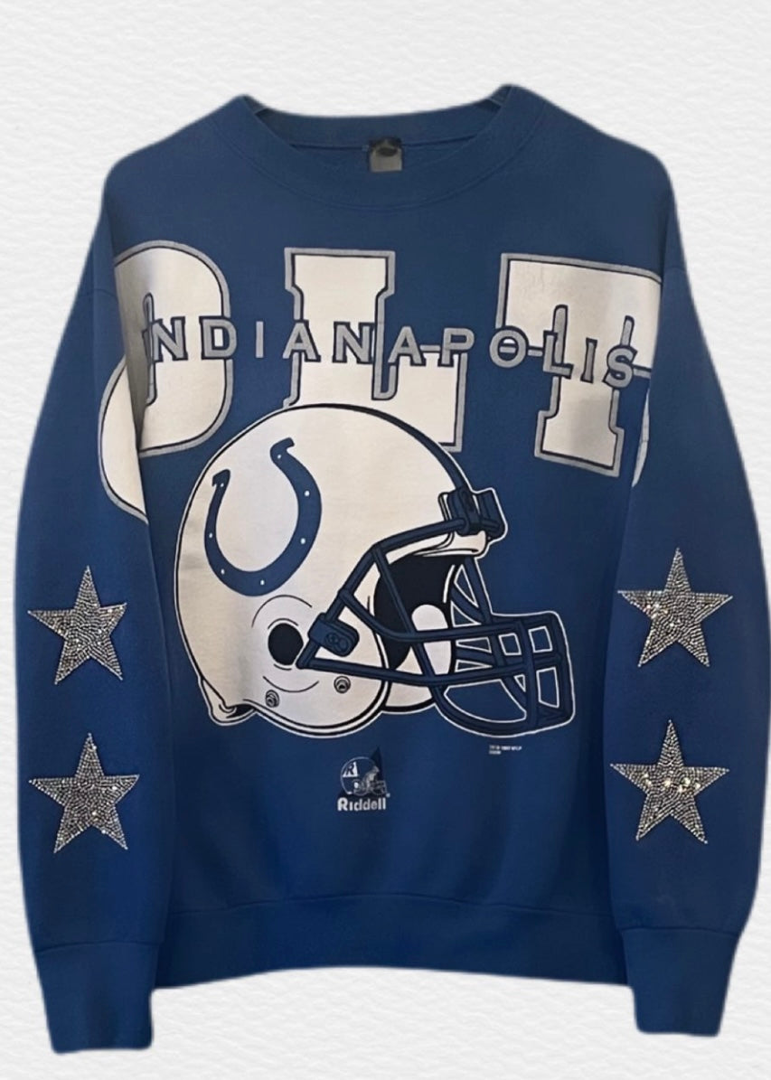 Indianapolis Colts, Football One of a KIND Vintage Sweatshirt with Crystal Star Design