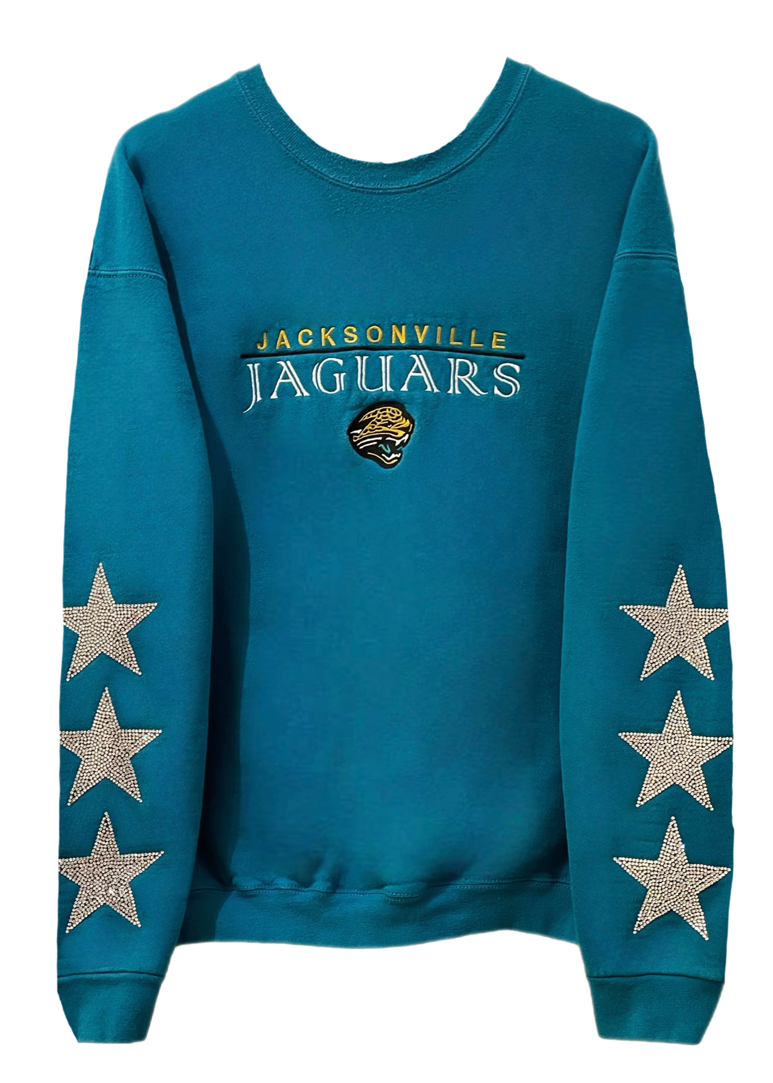 Jacksonville Jaguars, Football One of a KIND Vintage Sweatshirt with Three Crystal Star Design