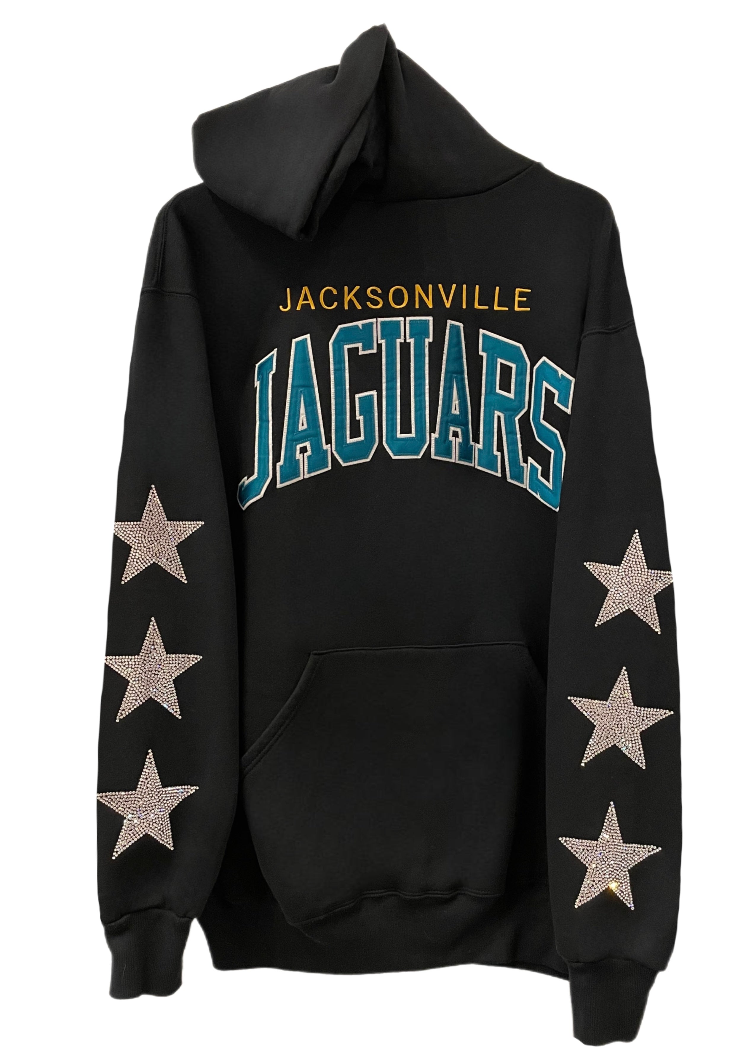 Jacksonville Jaguars, Football One of a KIND Vintage Hoodie with Three Crystal Star Design
