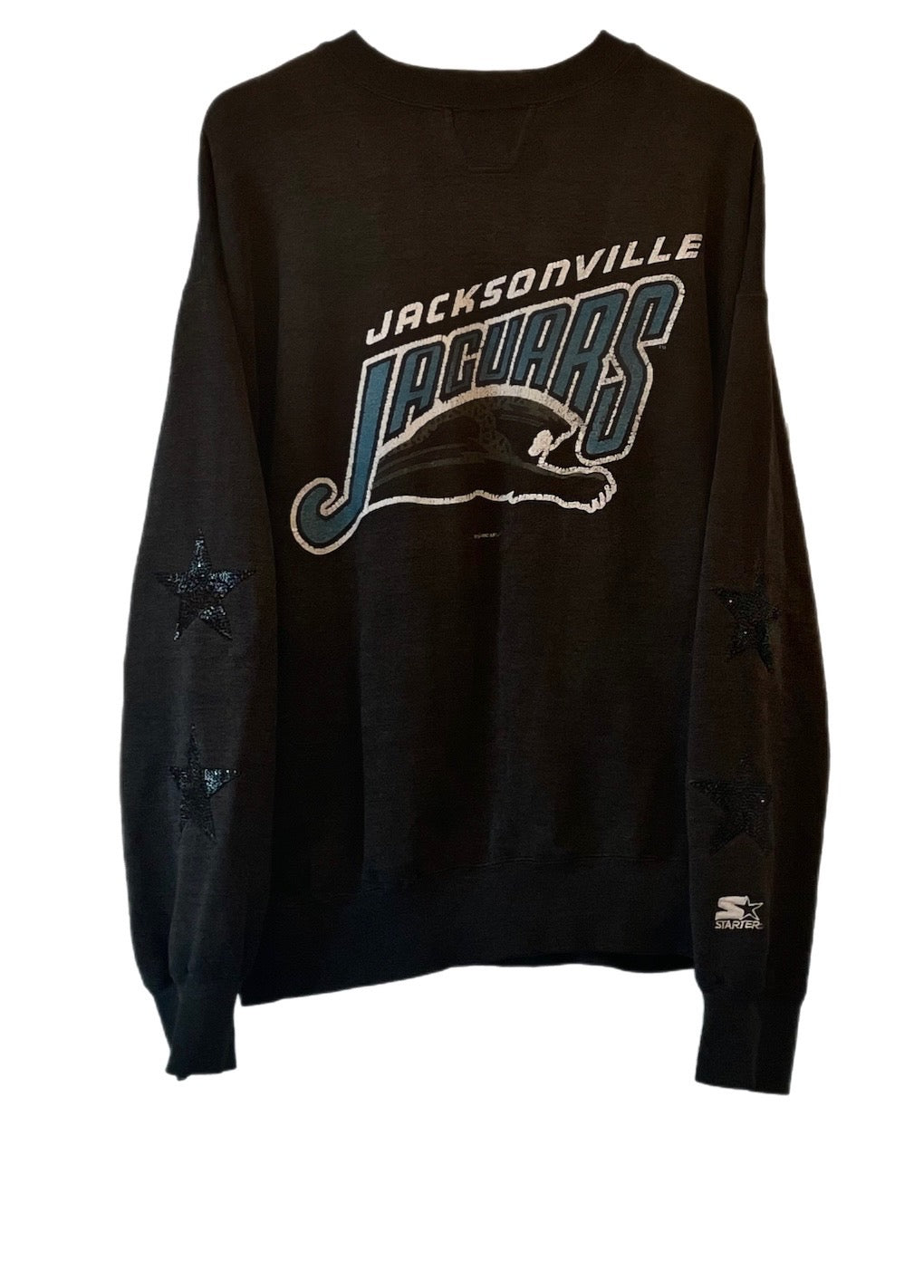 Jacksonville Jaguars, Football One of a KIND Vintage Sweatshirt with Black Crystal Star Design