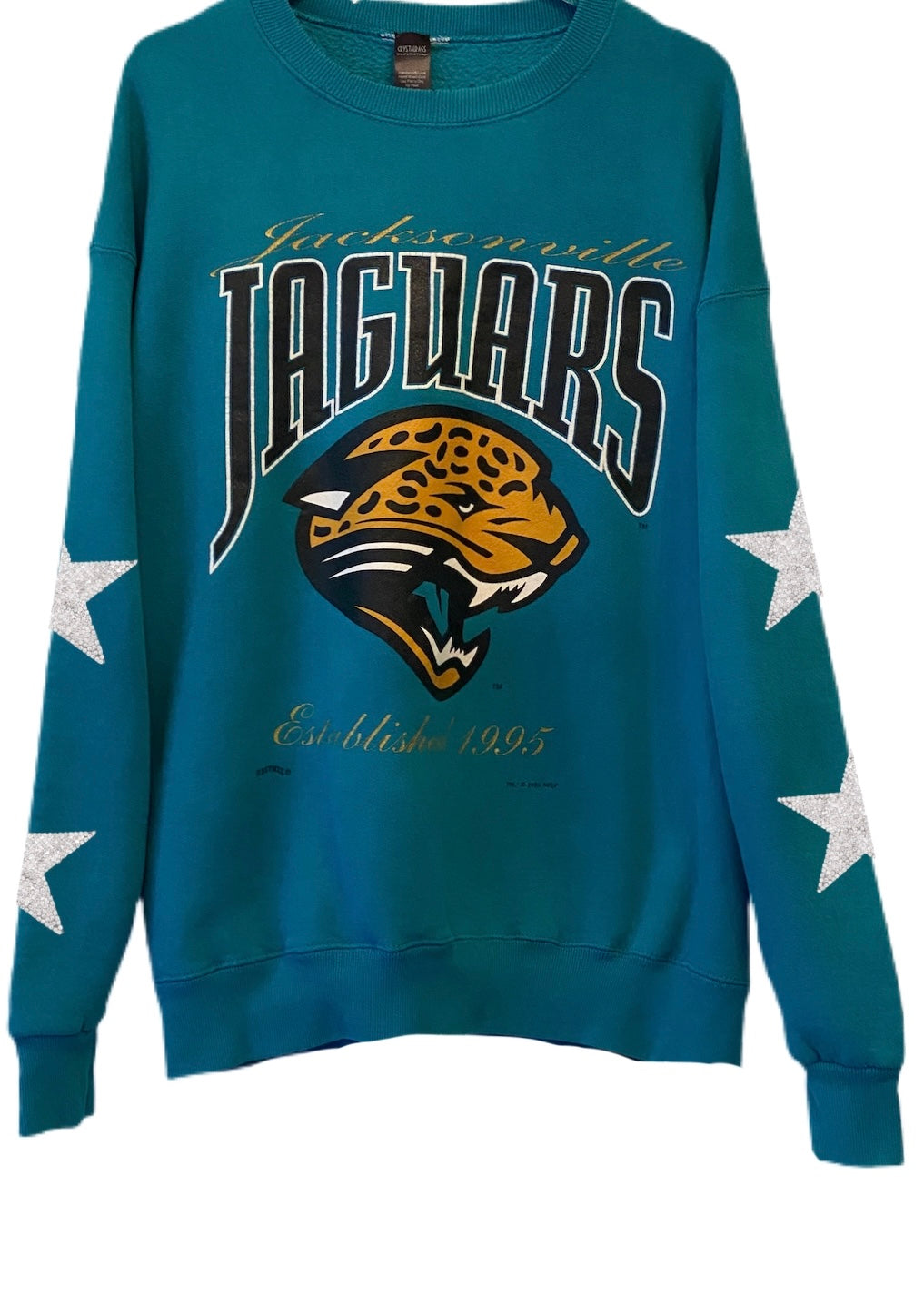 Jacksonville Jaguars, Football One of a KIND Vintage Sweatshirt with Crystal Star Design