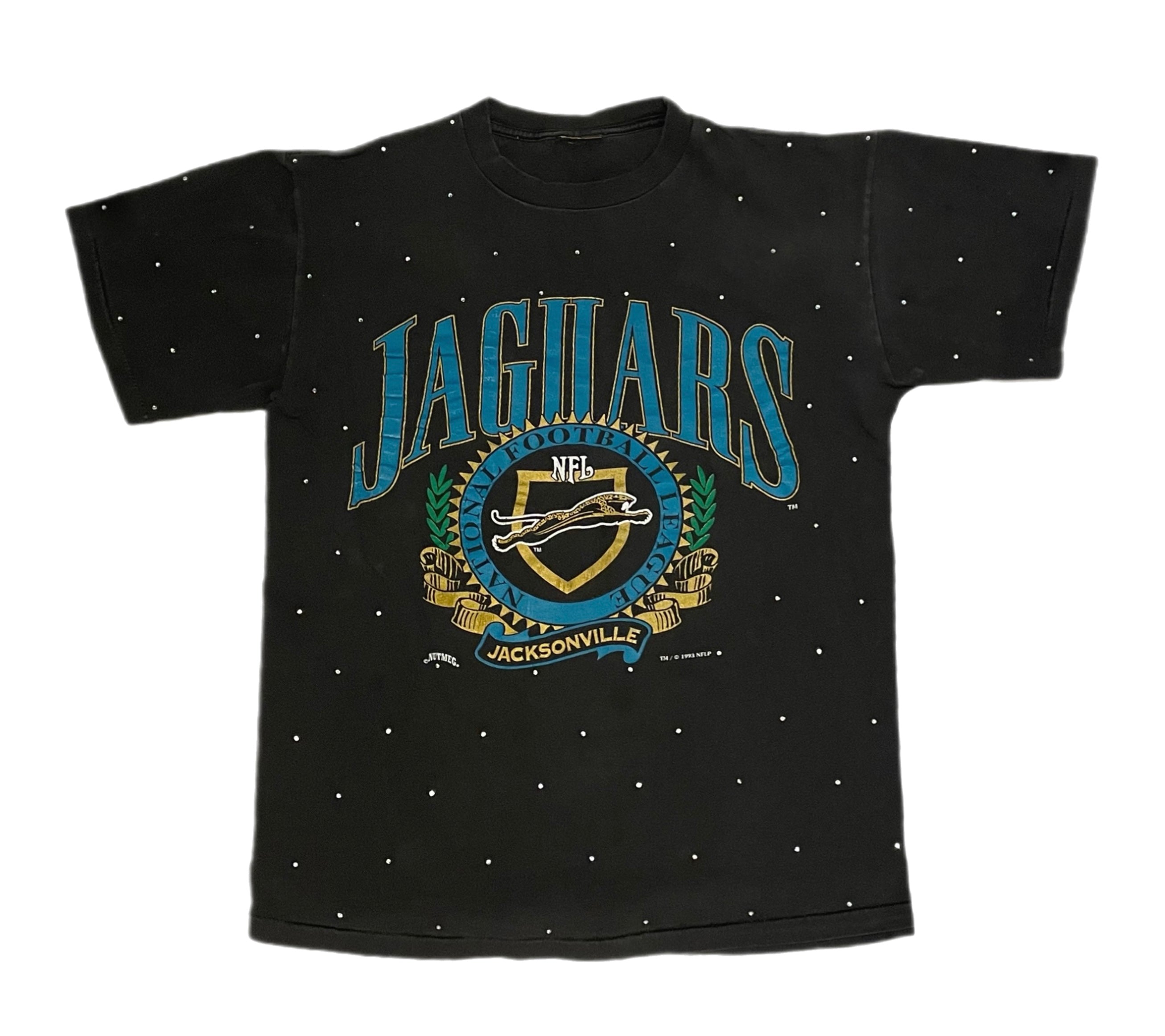 Jacksonville Jaguars, Football One of a KIND Vintage Tee with Overall Crystal Design - Soft, frayed & oversized depending on the person - Size: M. - Color: Black