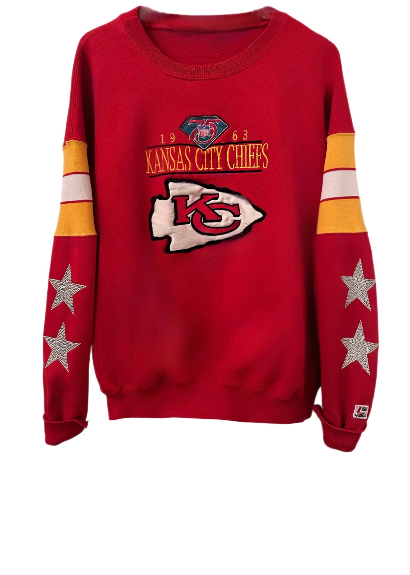 Kansas City Chiefs, Football One of a KIND Vintage Sweatshirt with Crystal Star Design