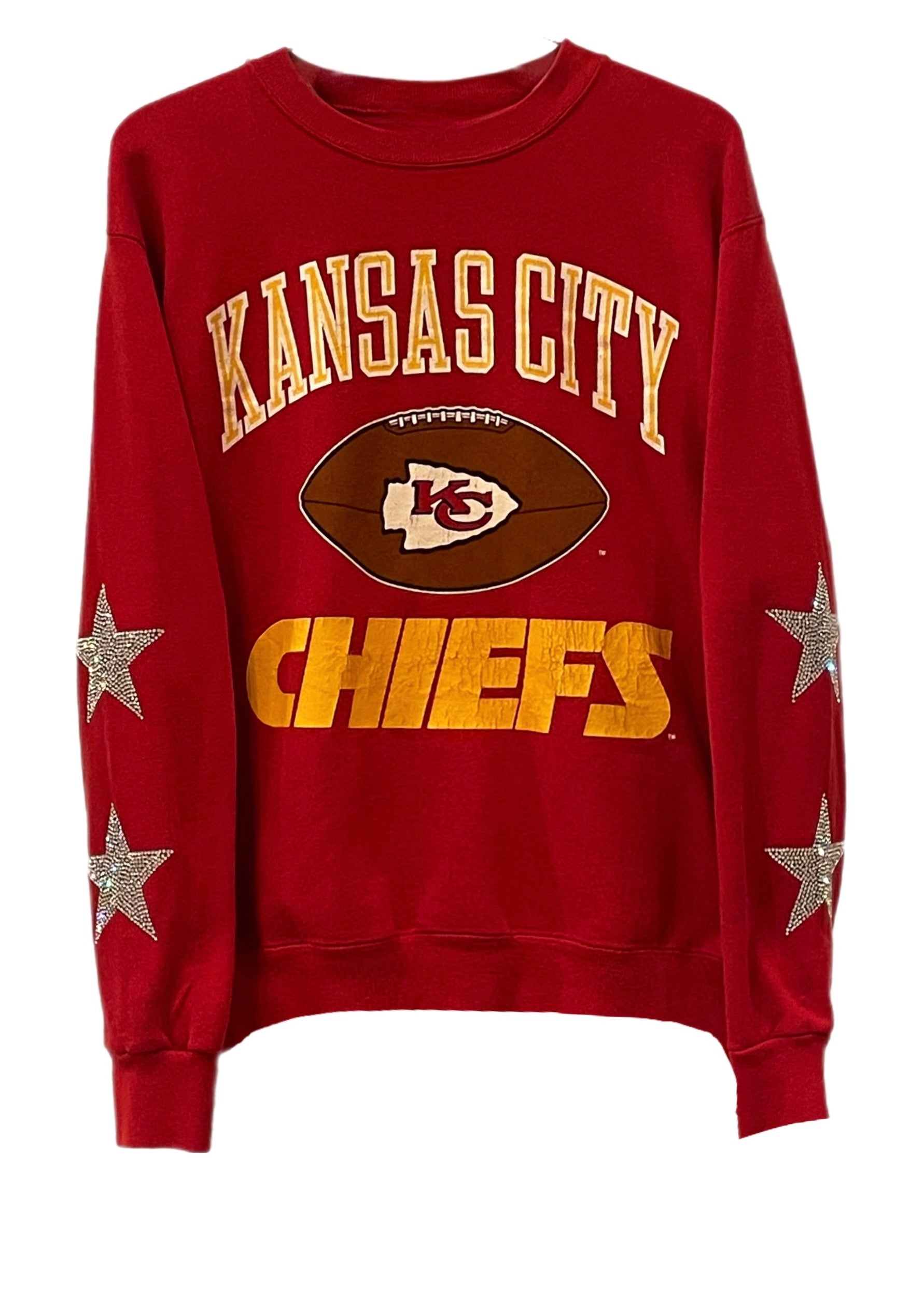 Kansas City Chiefs, Football One of a KIND Vintage Sweatshirt with Crystal Star Design