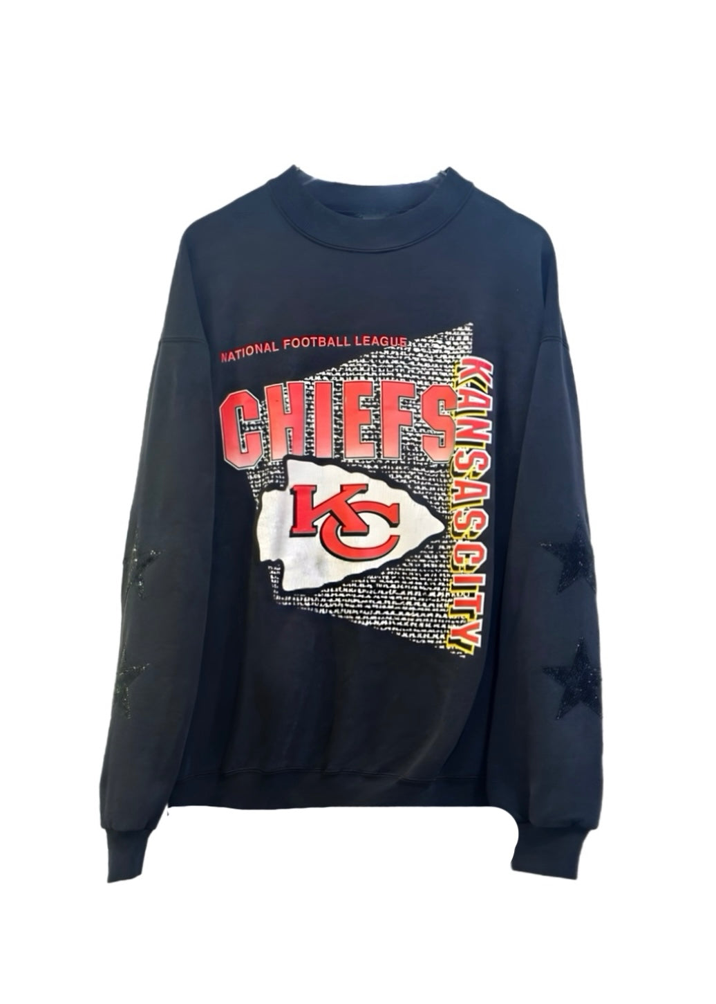 Kansas City Chiefs, Football One of a KIND Vintage Sweatshirt with Black Crystal Star Design