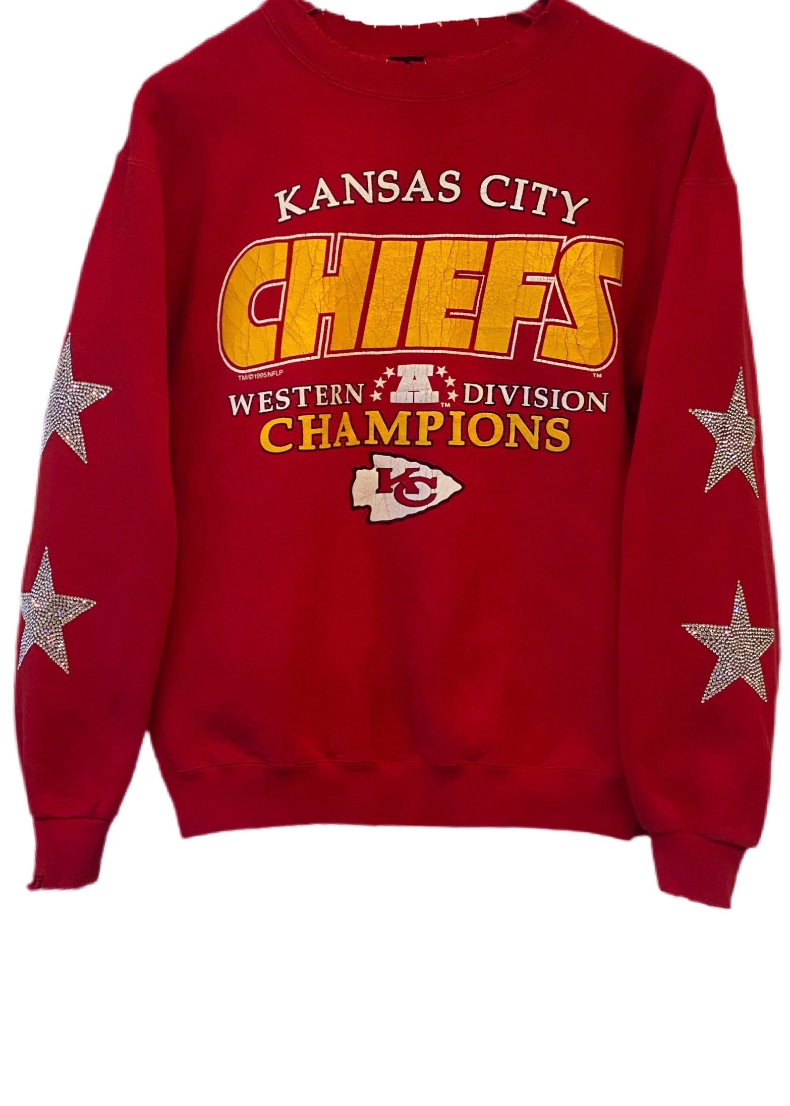 Kansas City Chiefs, Football One of a KIND Vintage Sweatshirt with Crystal Star Design