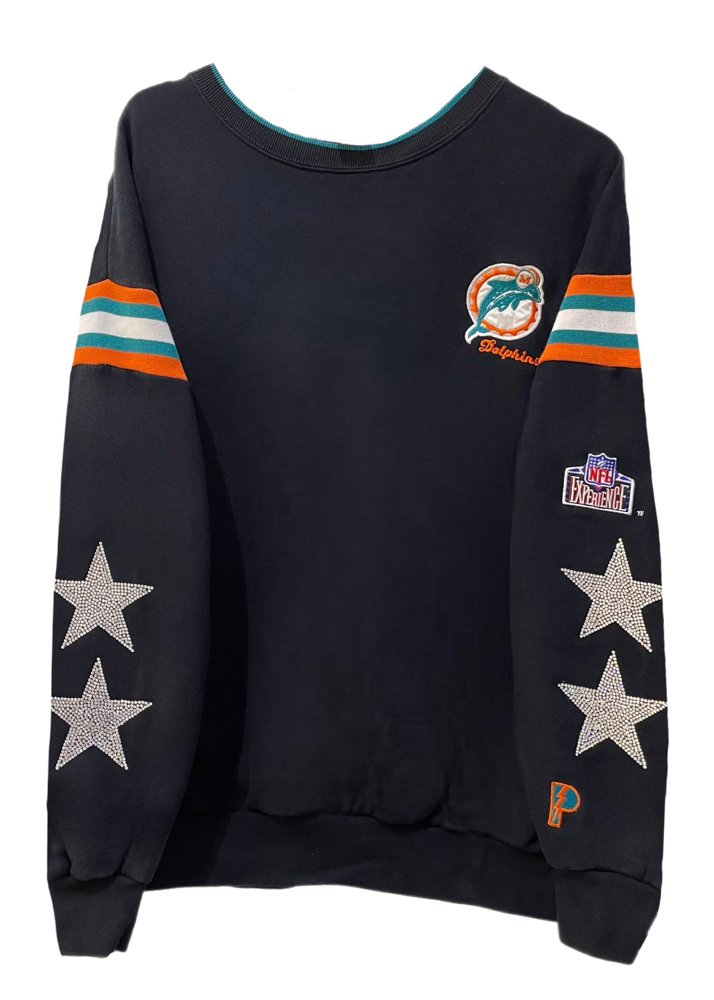 Miami Dolphins, Football One of a KIND Vintage Sweatshirt with Crystal Star Design