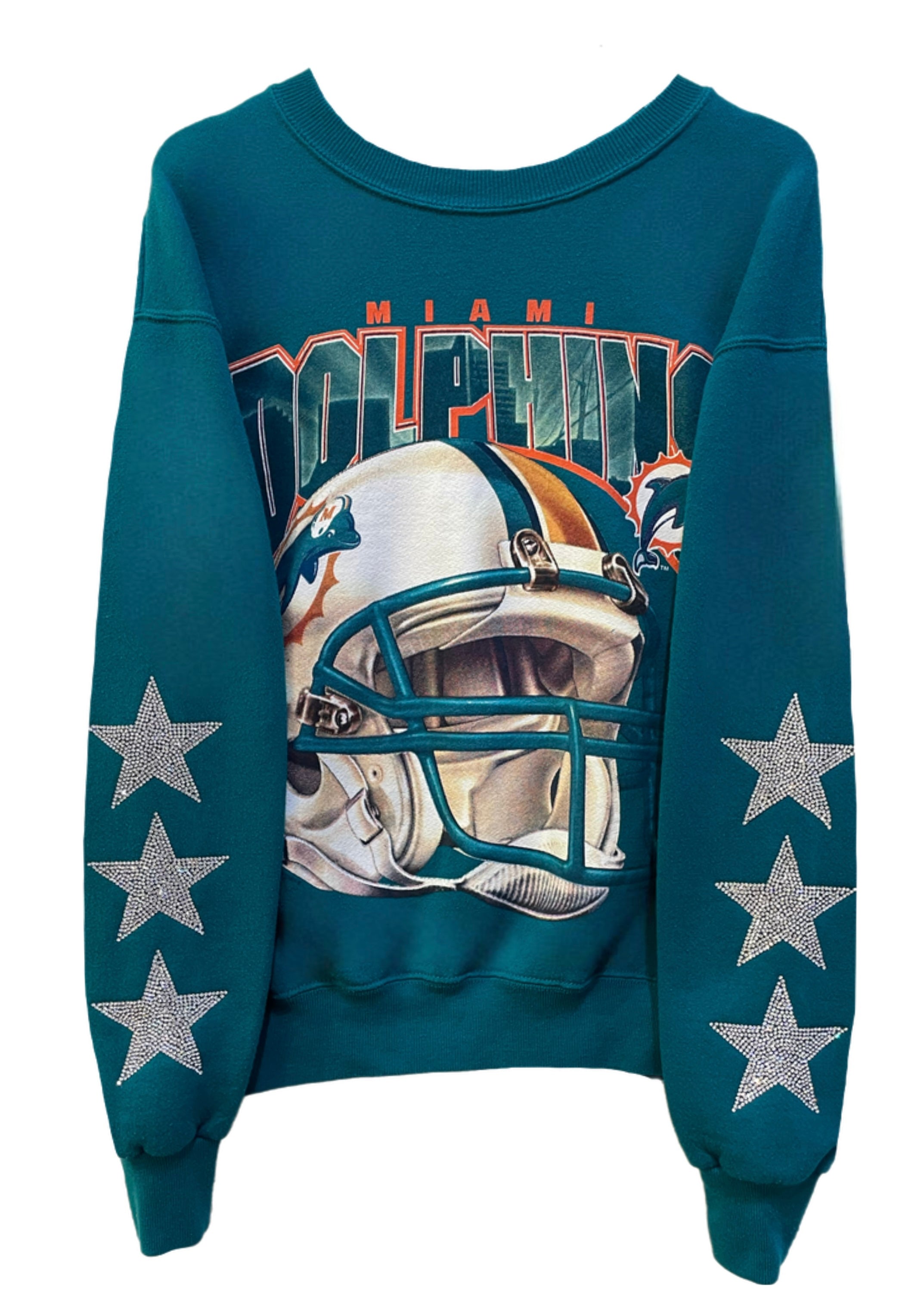 Miami Dolphins, Football One of a KIND Vintage Sweatshirt with Three Crystal Star Design