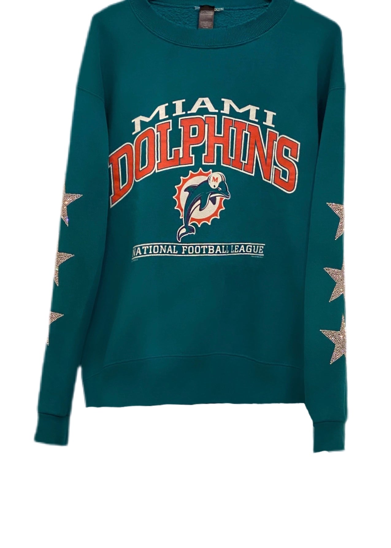 Miami Dolphins, Football One of a KIND Vintage Sweatshirt with Three Crystal Star Design