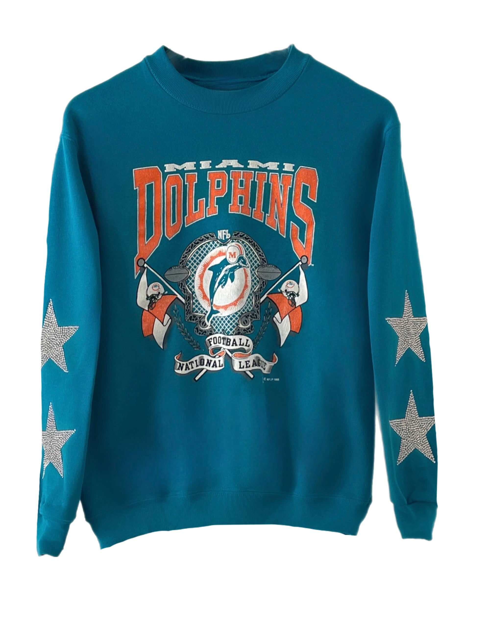 Miami Dolphins, Football One of a KIND Vintage Sweatshirt with Crystal Star Design.