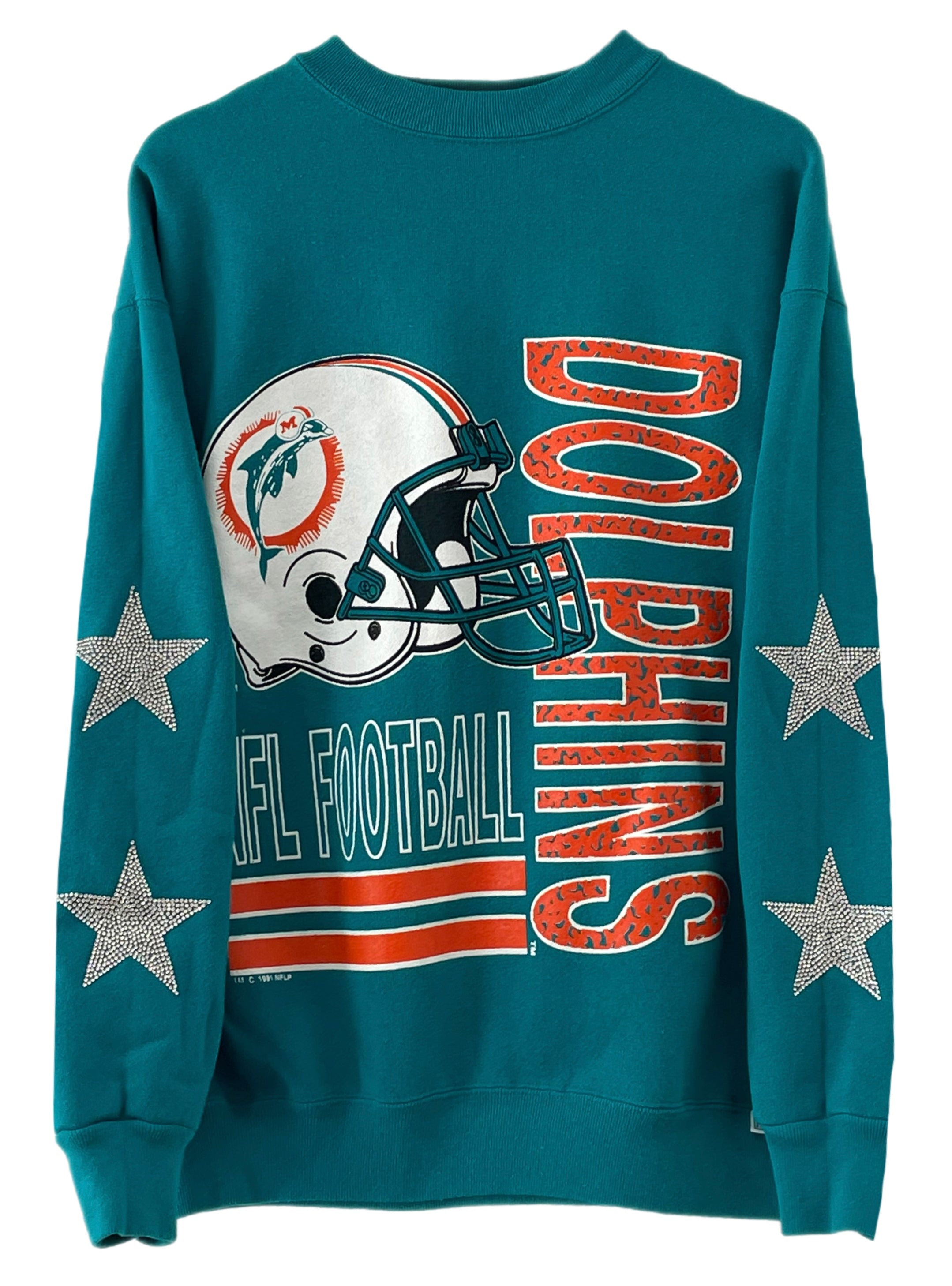 Miami Dolphins, Football One of a KIND Vintage Sweatshirt with Crystal Star Design