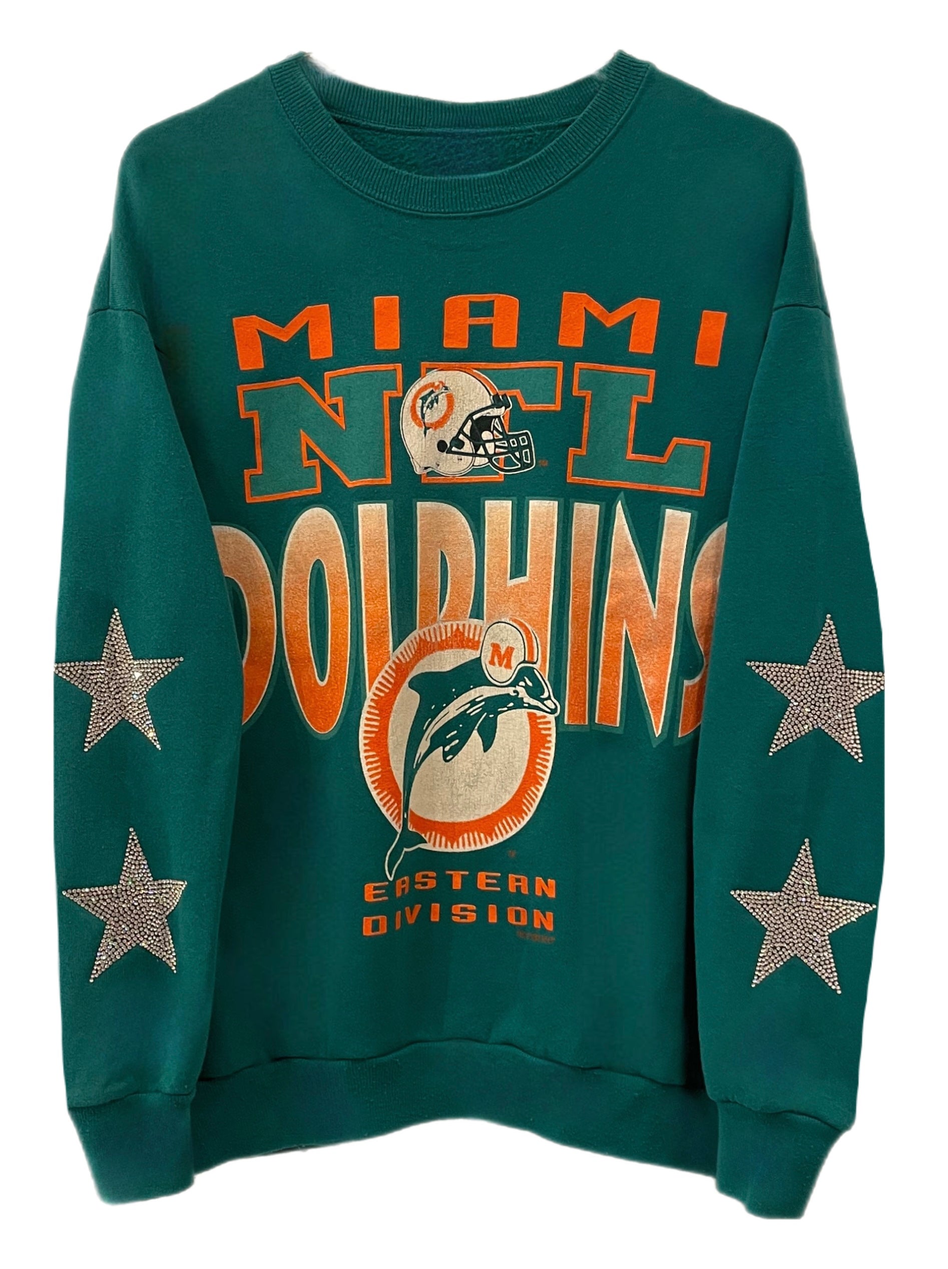 Miami Dolphins, Football One of a KIND Vintage Sweatshirt with Crystal Star Design