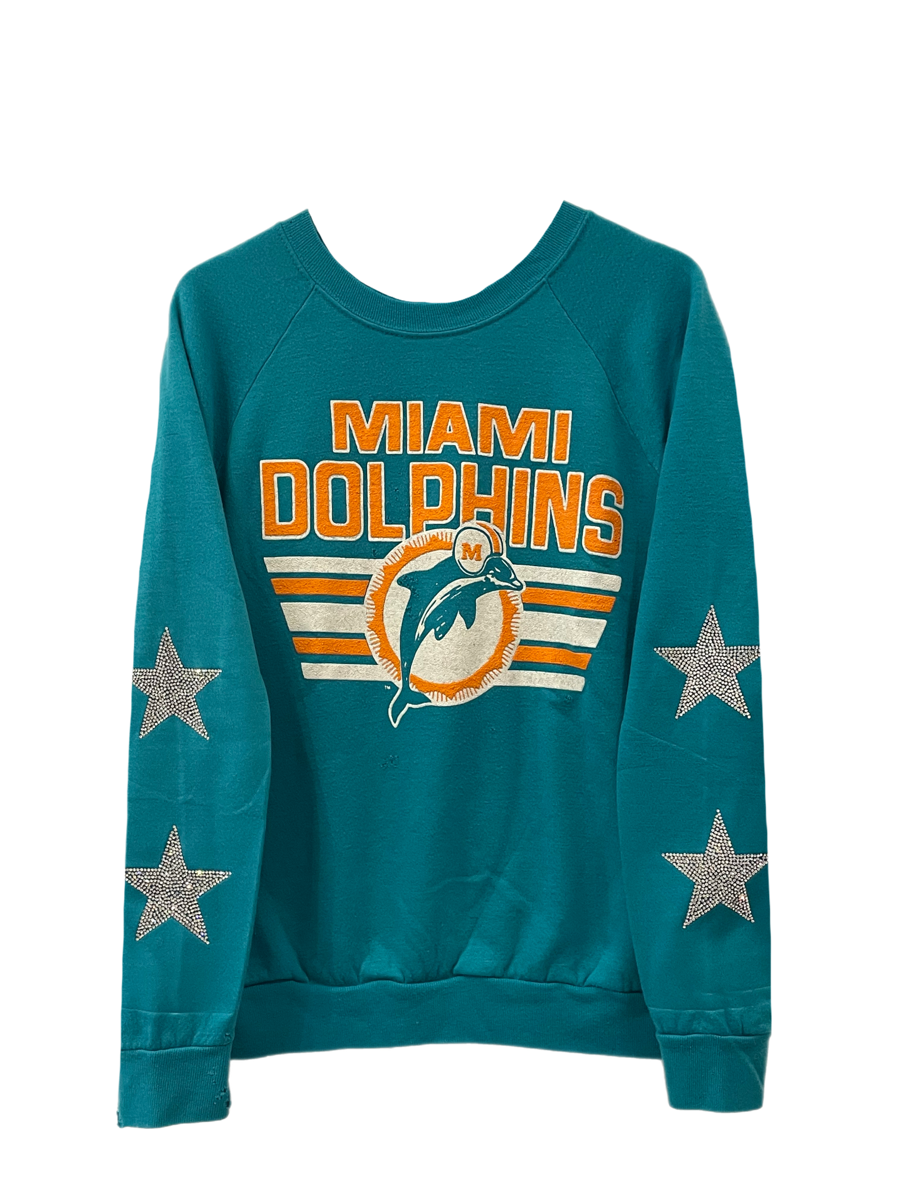 Miami Dolphins, Football One of a KIND Vintage Sweatshirt with Crystal Star Design