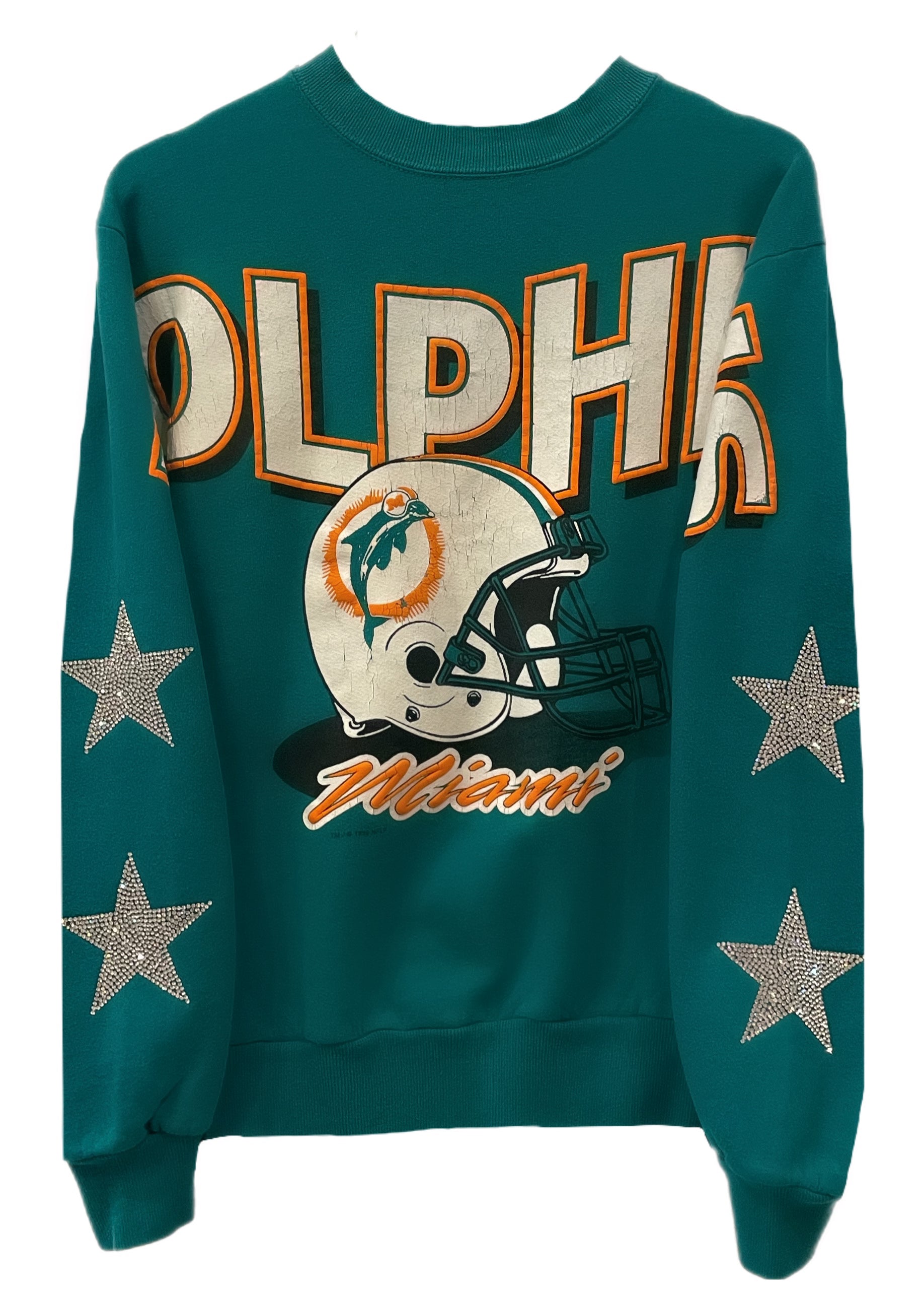 Miami Dolphins, Football One of a KIND Vintage Sweatshirt with Crystal Star Design