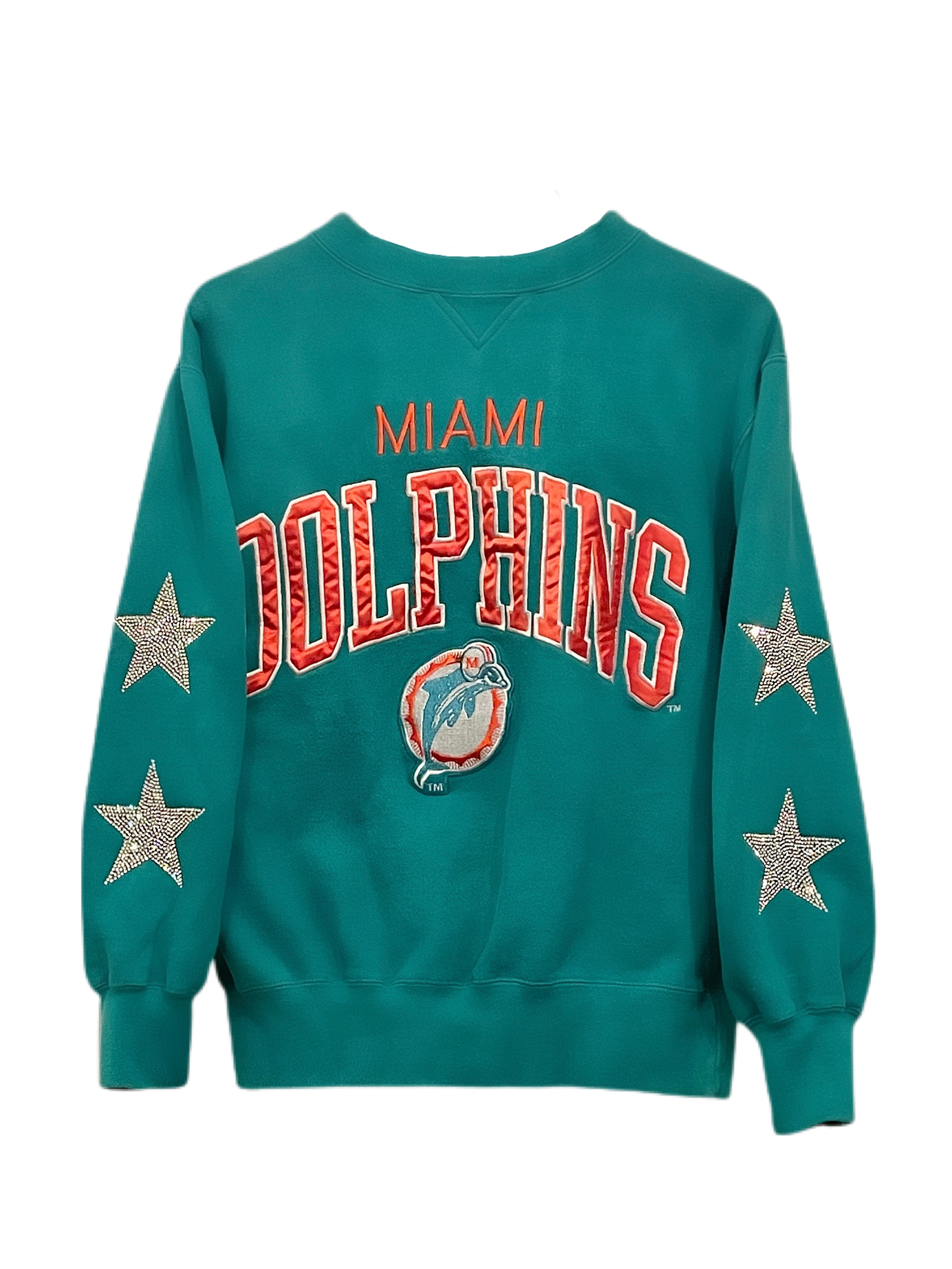 Miami Dolphins, Football One of a KIND Vintage Sweatshirt with Crystal Star Design