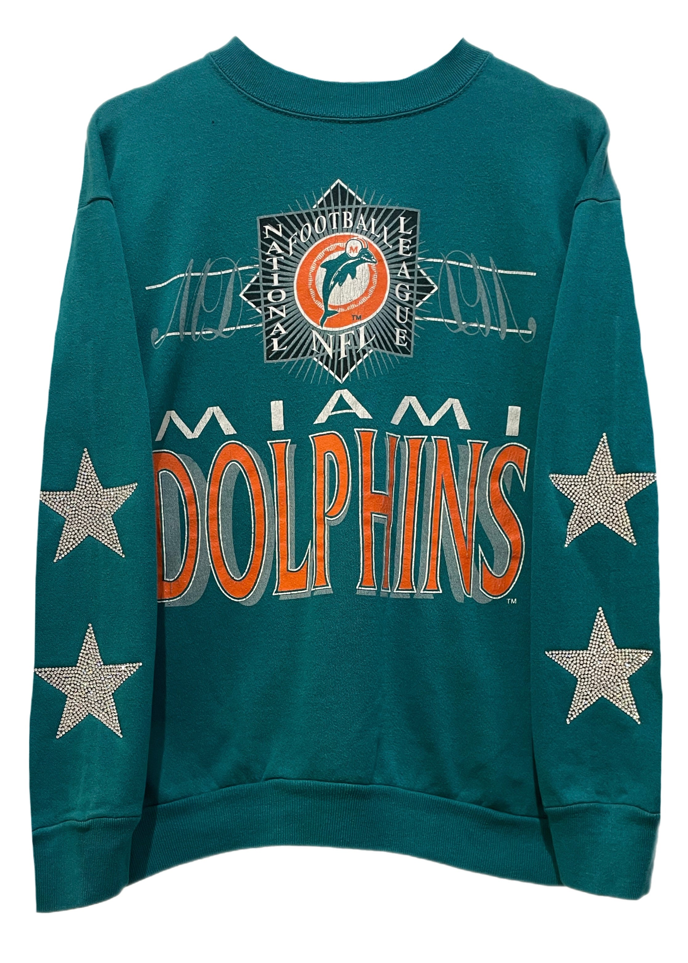 Miami Dolphins, Football One of a KIND Vintage Sweatshirt with Crystal Star Design