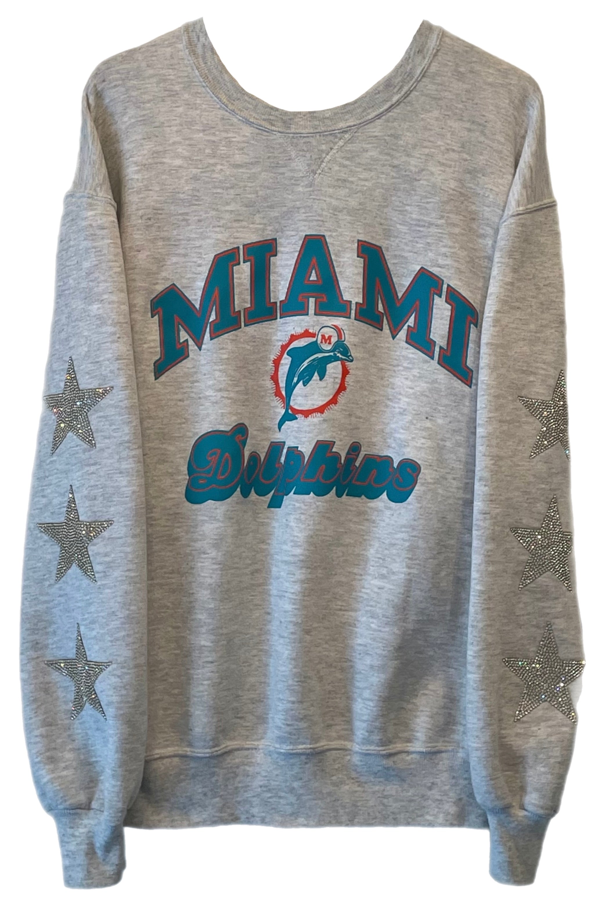 Miami Dolphins, Football One of a KIND Vintage Sweatshirt with Three Crystal Star Design