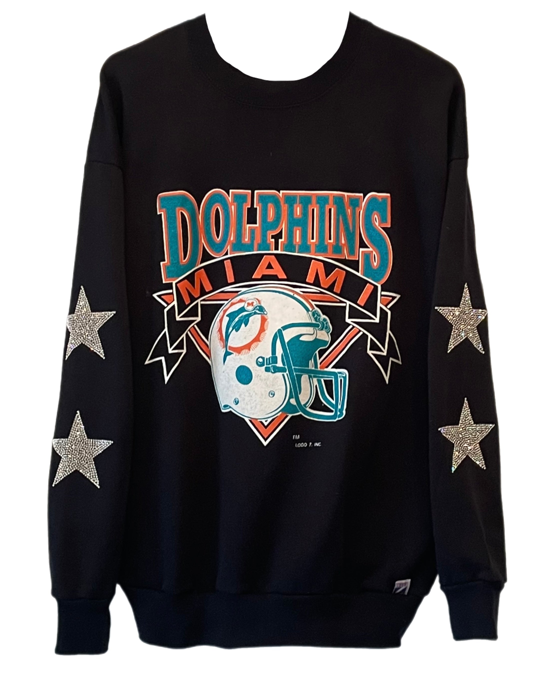 Miami Dolphins, Football One of a KIND Vintage Sweatshirt with Crystal Star Design