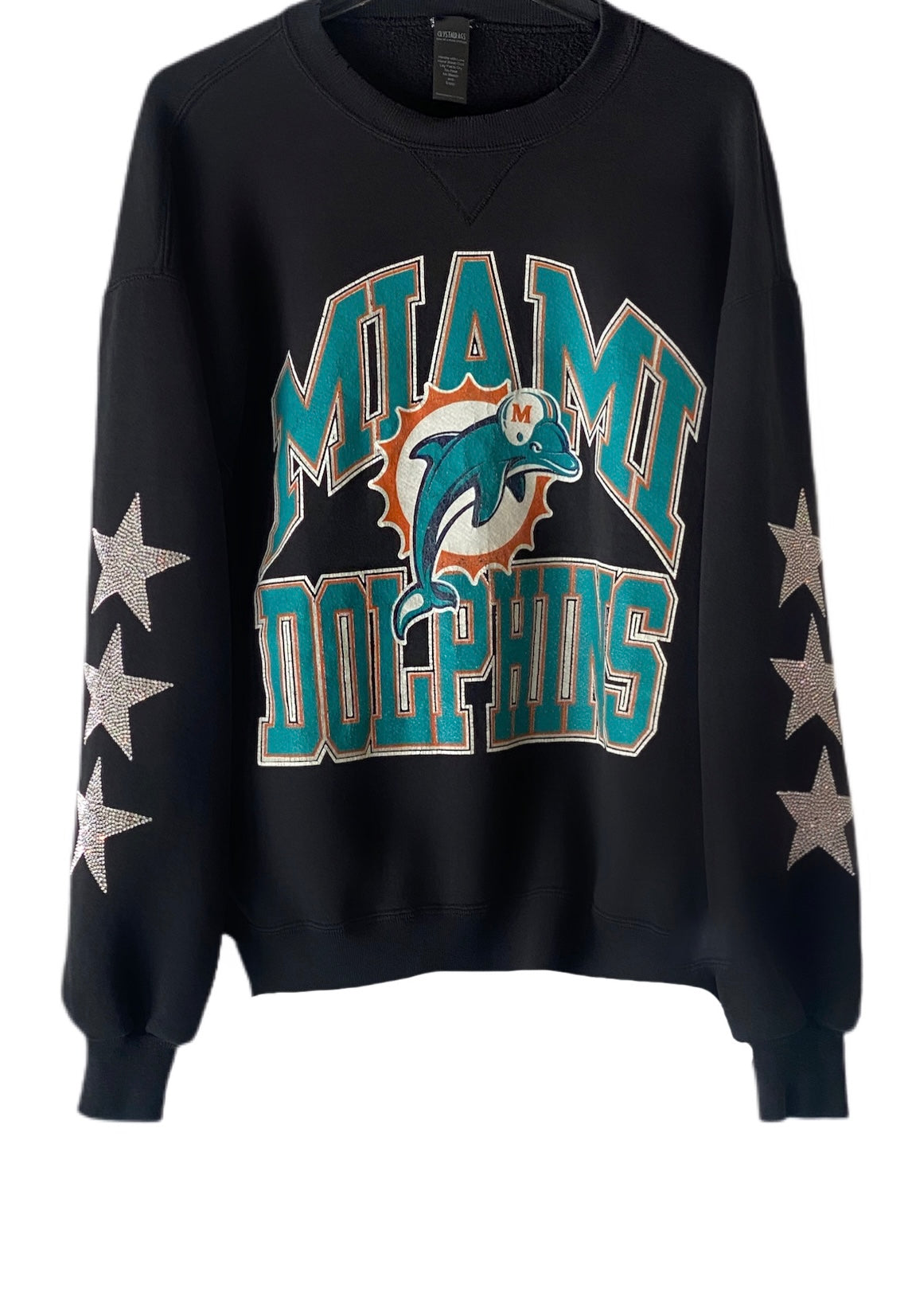 Miami Dolphins, Football One of a KIND Vintage Sweatshirt with Three Crystal Star Design