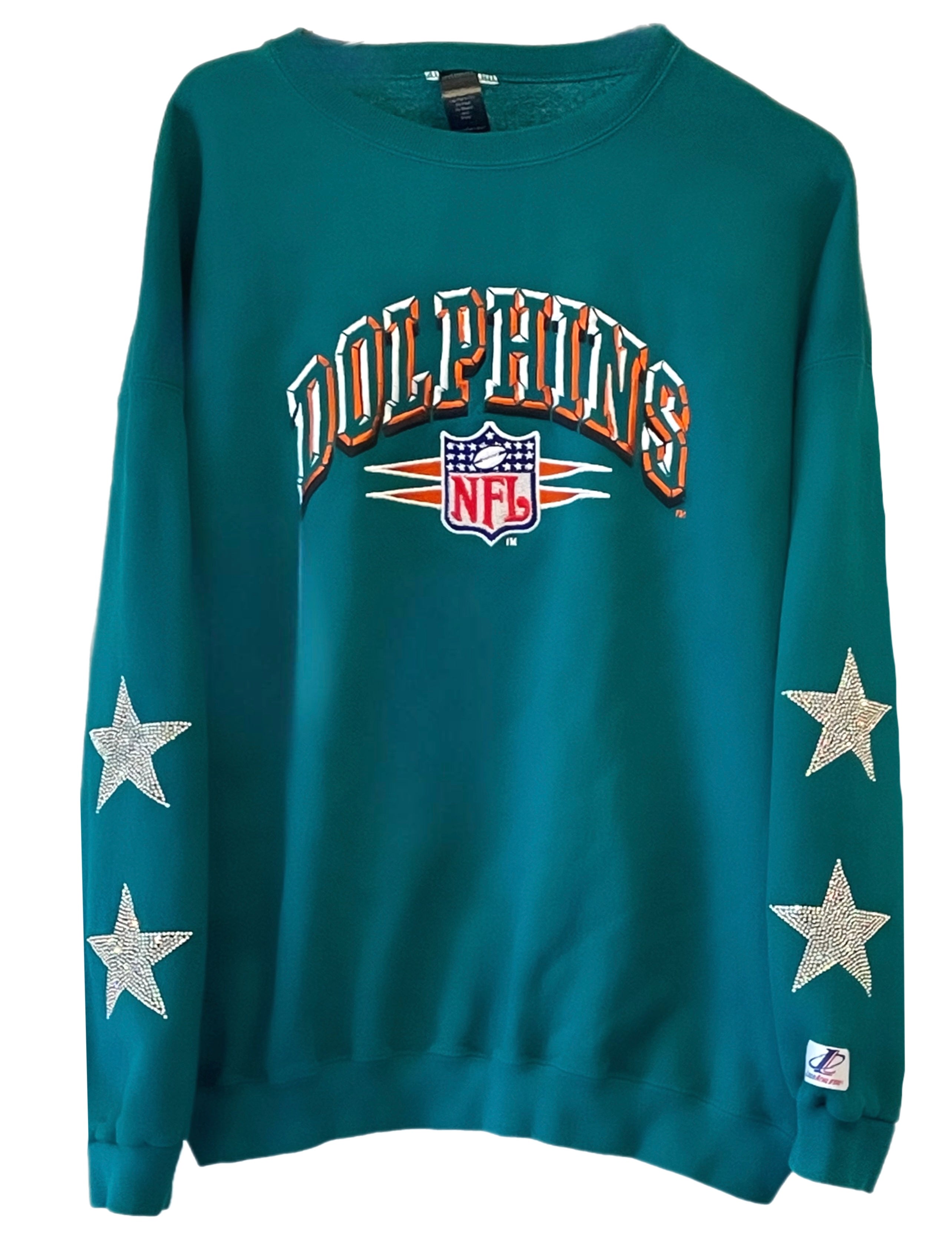 Miami Dolphins, Football One of a KIND Vintage Sweatshirt with Crystal Star Design