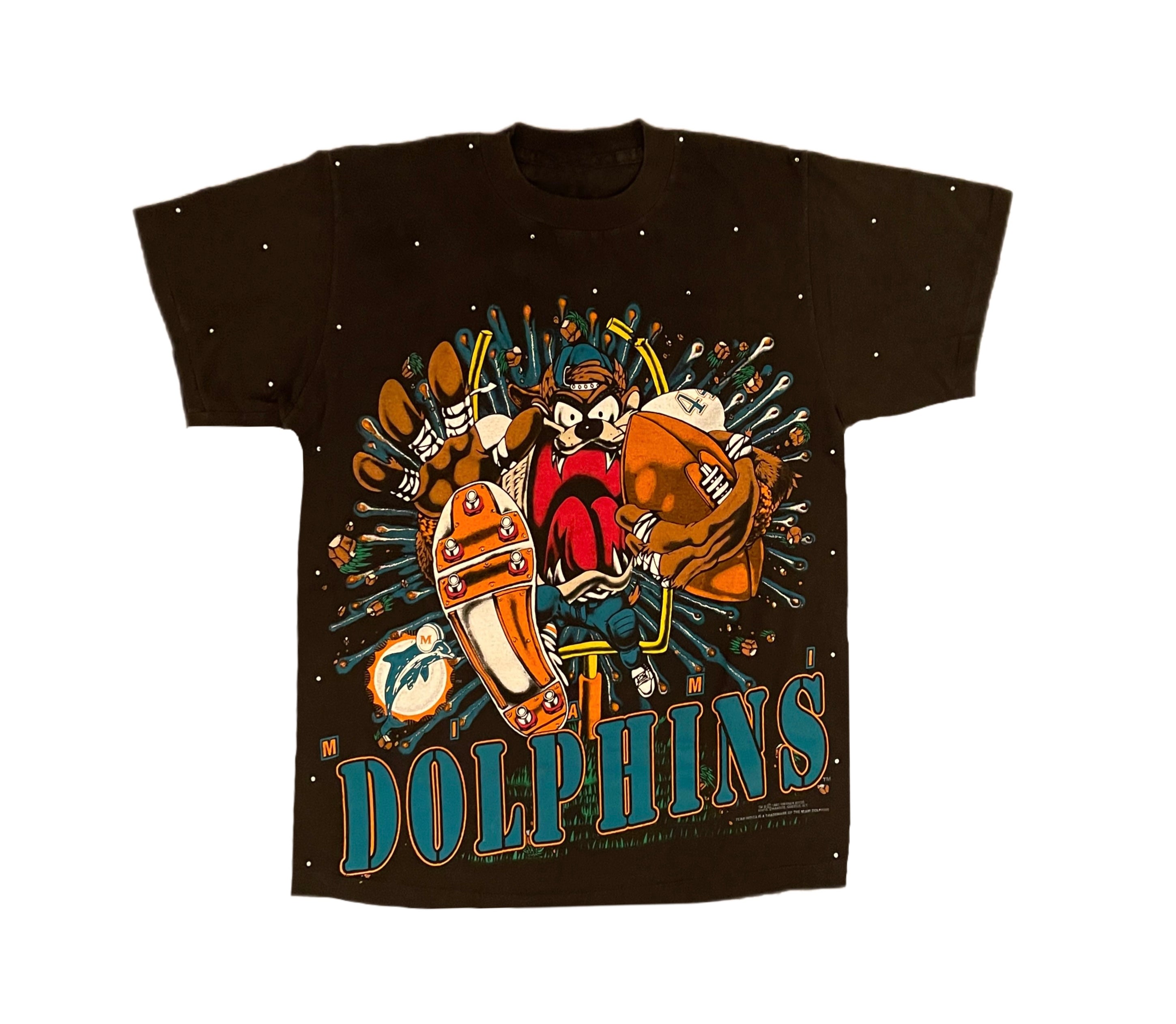 Miami Dolphins, Football One of a KIND Vintage “Rare Find” Tee with Overall Crystal Design