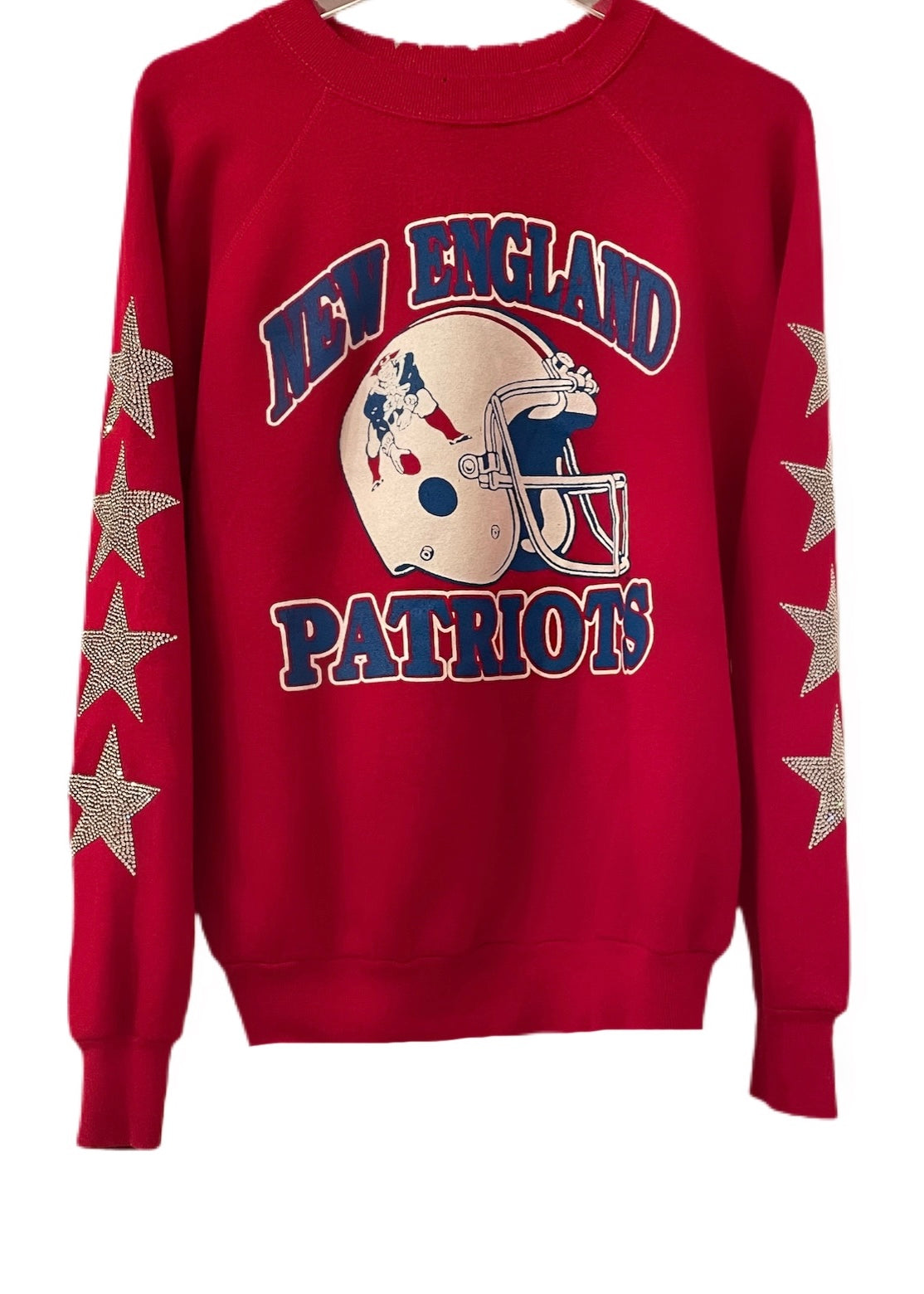 New England Patriots, Football One of a KIND Vintage Sweatshirt with Four Crystal Star Design