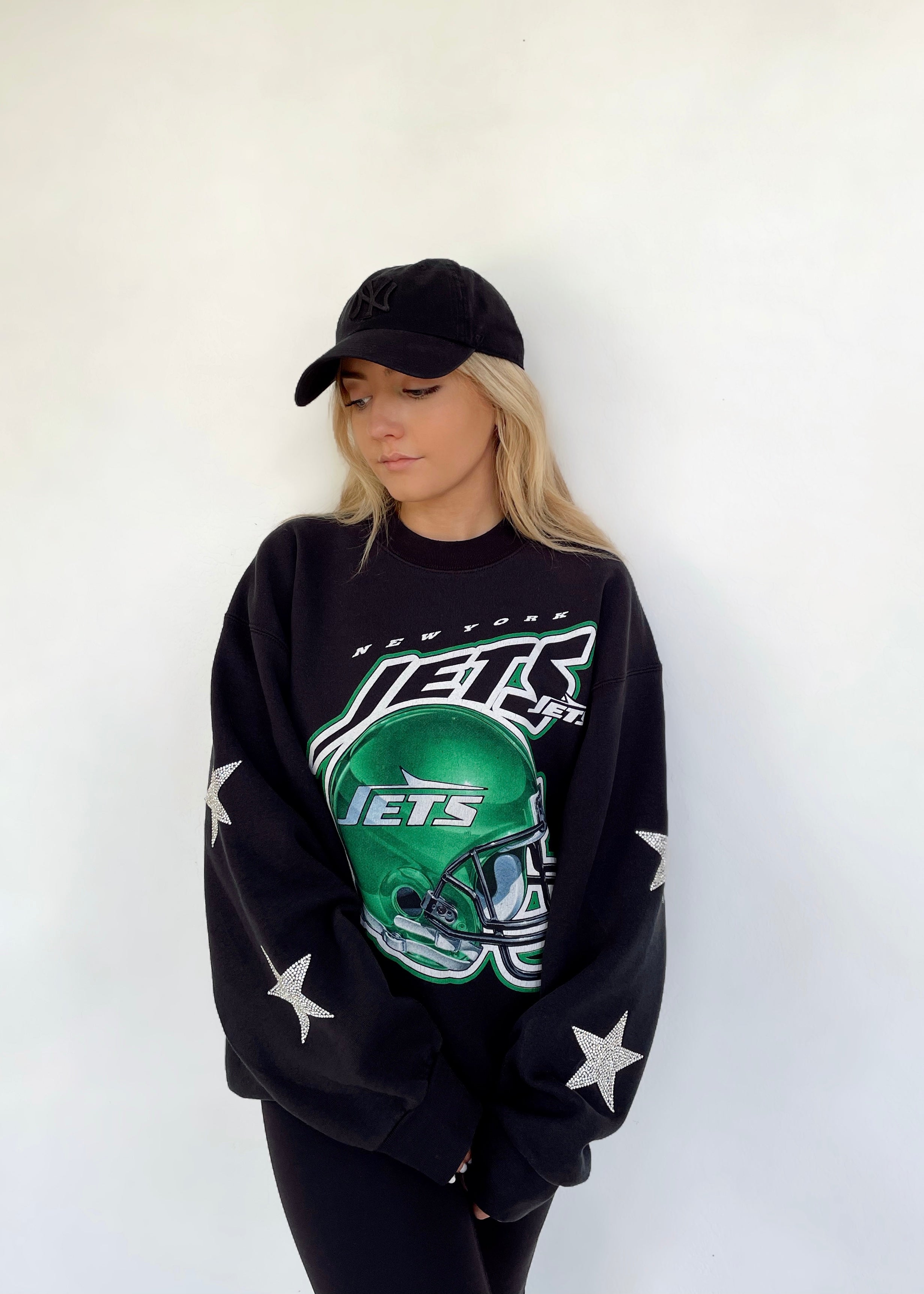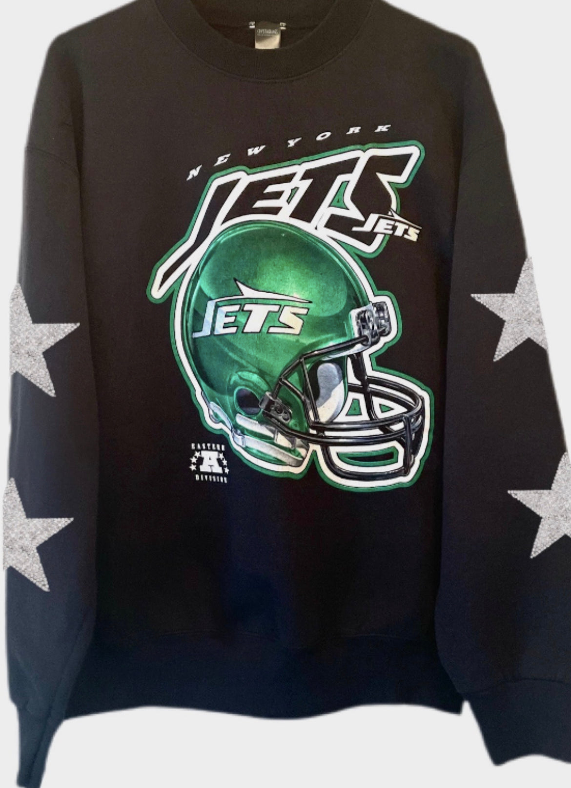 NY Jets, Football One of a KIND Vintage Sweatshirt with Crystal Star Design