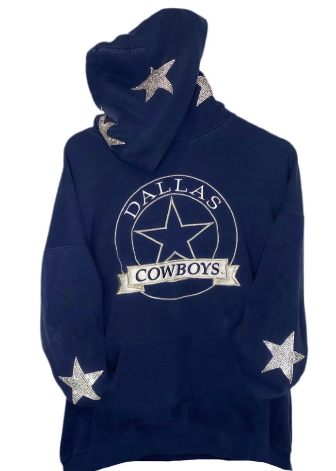 Dallas Cowboys, Football One of a KIND Vintage Hoodie with Crystal Star Design on Sleeves & Hood