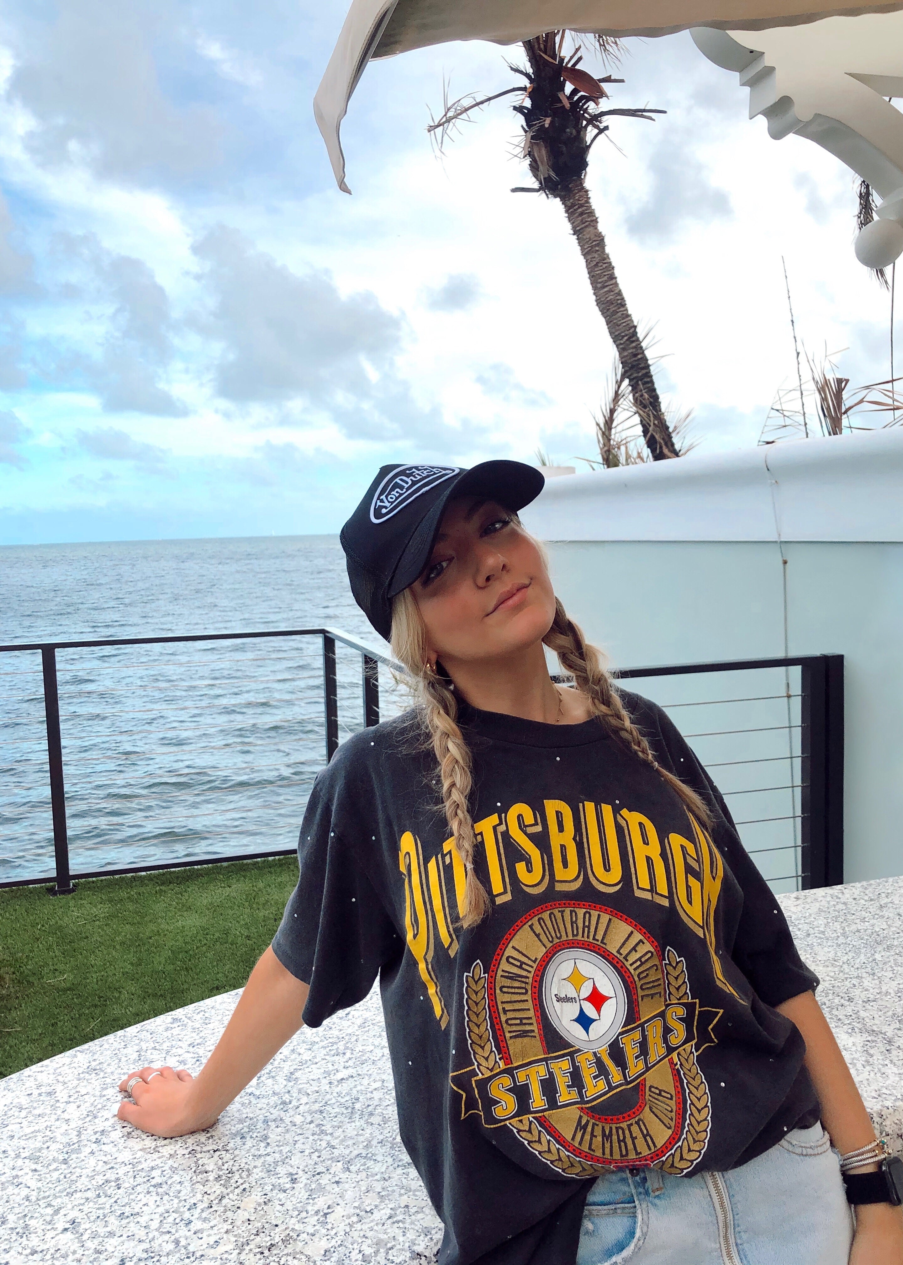 Pittsburgh Steelers, Football One of a KIND Vintage Tee with Overall Crystal Design