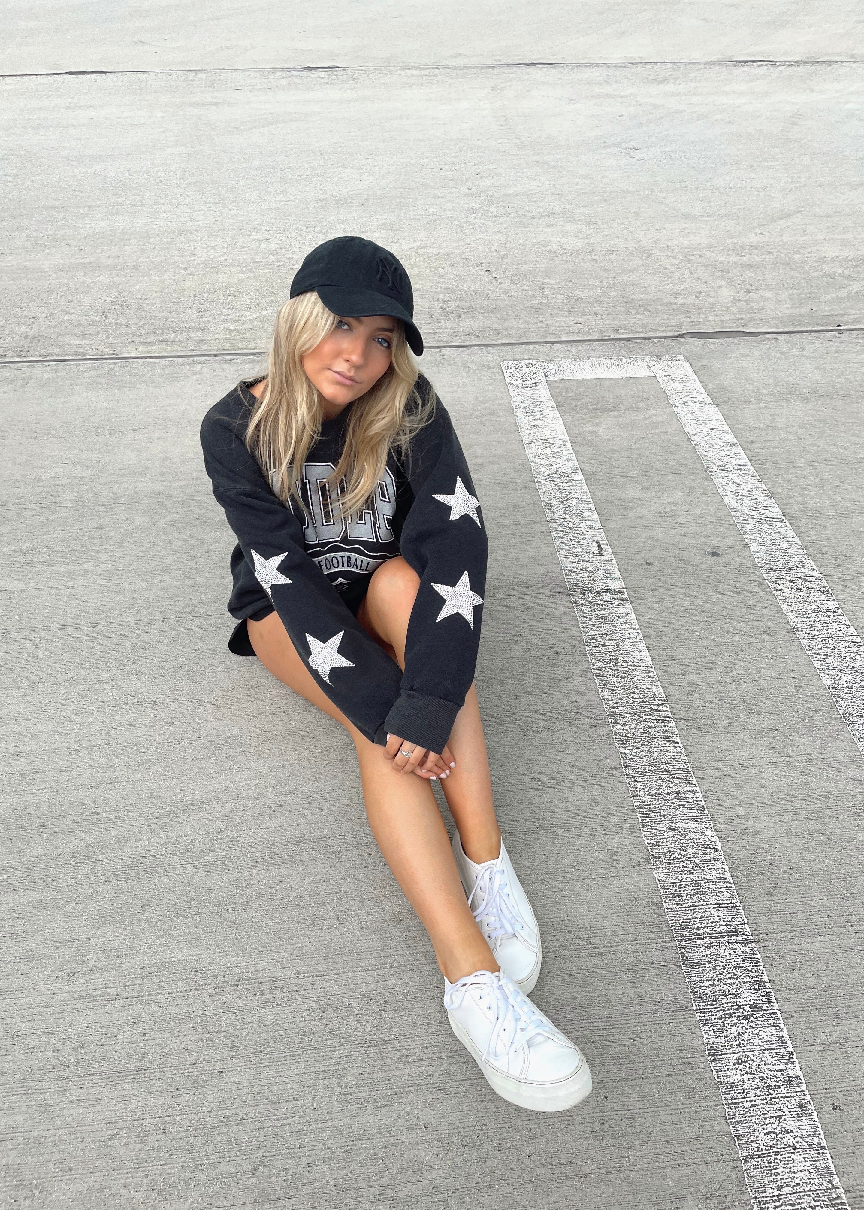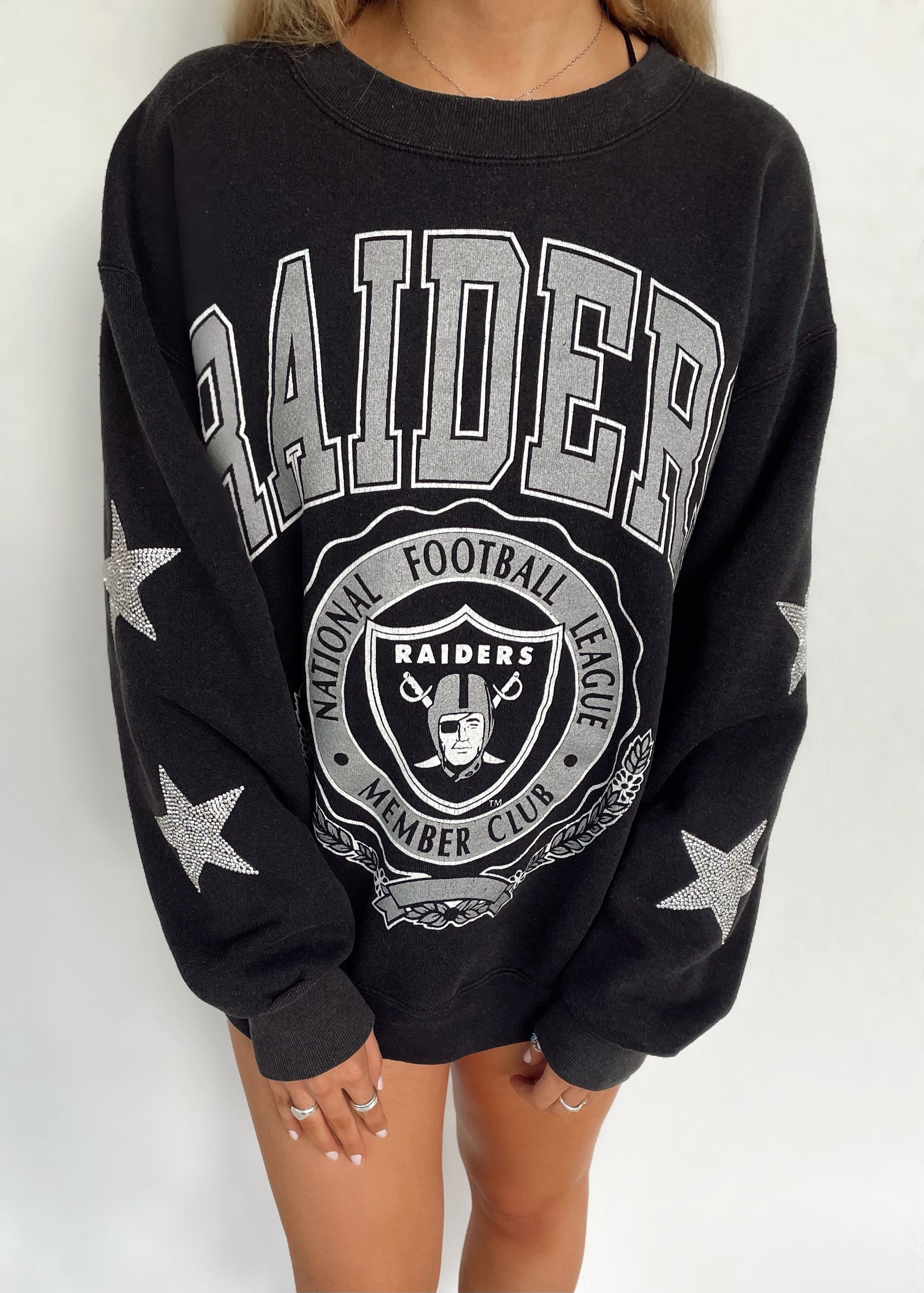 Las Vegas Raiders, Football One of a KIND Vintage Sweatshirt with Crystal Star Design.                                                       - So soft & oversized depending on the person