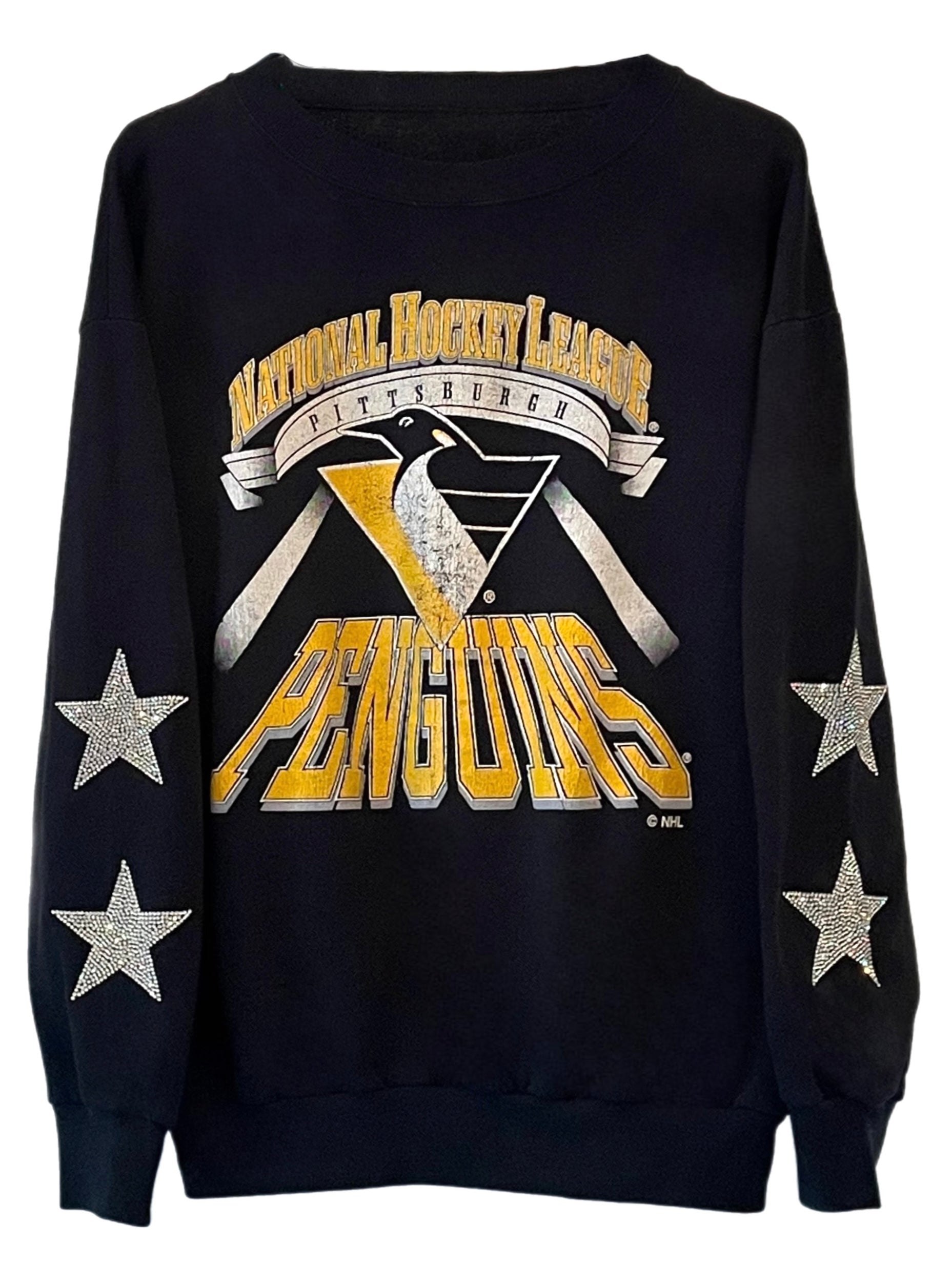 Pittsburgh Penguins, Hockey One of a KIND Vintage Sweatshirt with Crystal Star Design