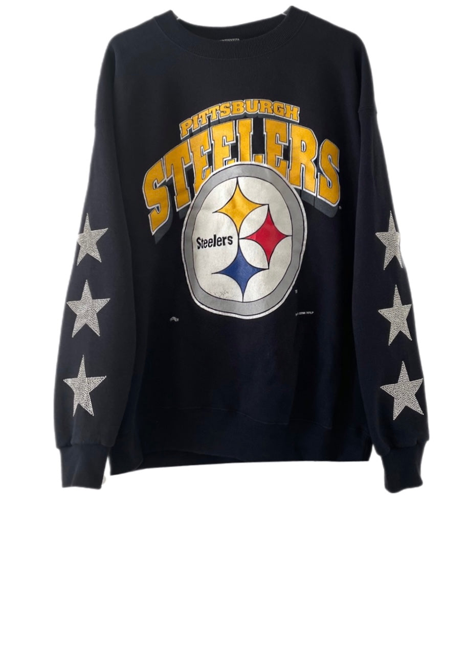 Pittsburgh Steelers, Football One of a KIND Vintage Sweatshirt with Three Crystal Star Design