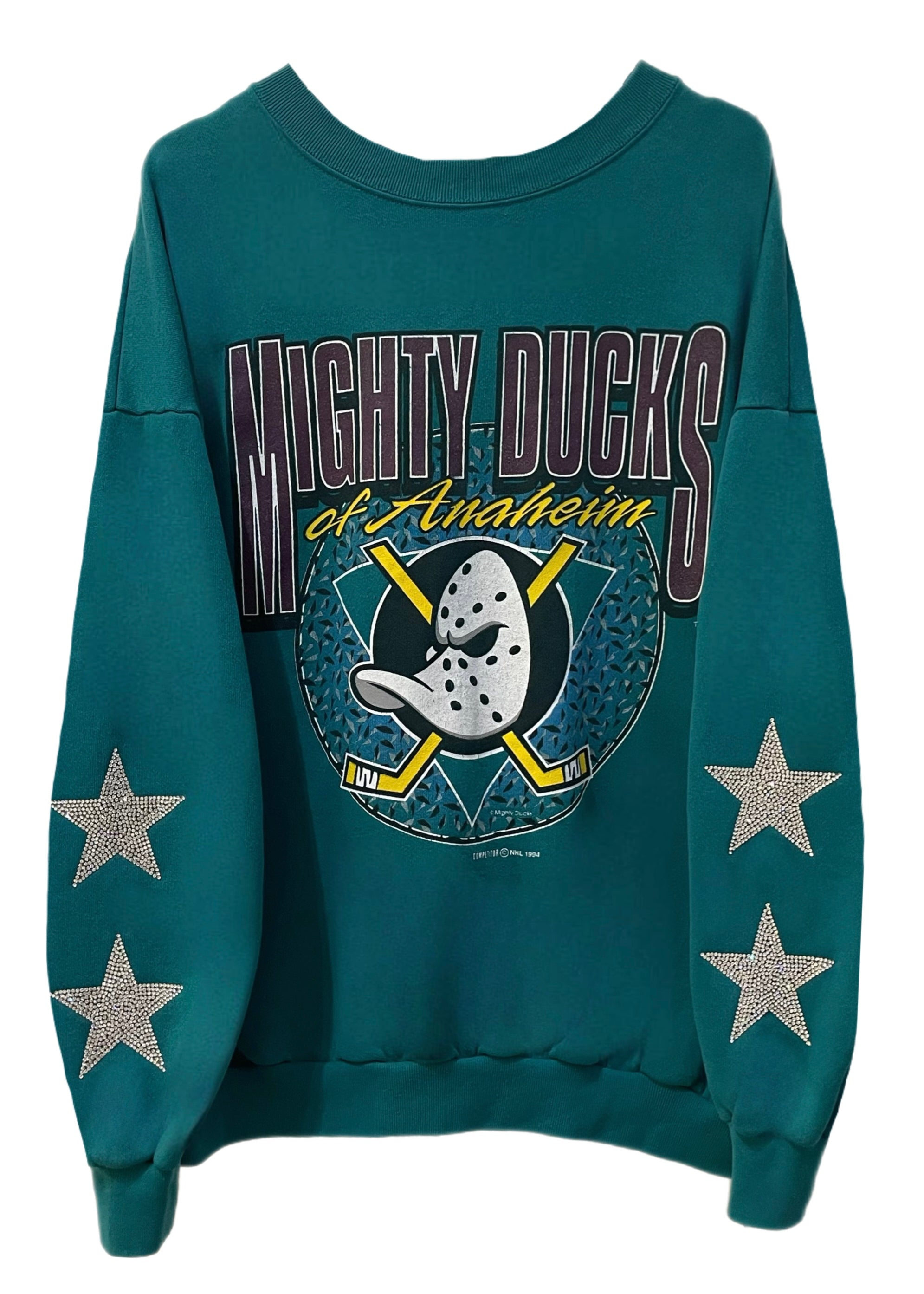 Anaheim Ducks, Hockey One of a KIND Vintage Mighty Ducks Sweatshirt with Crystal Star Design.