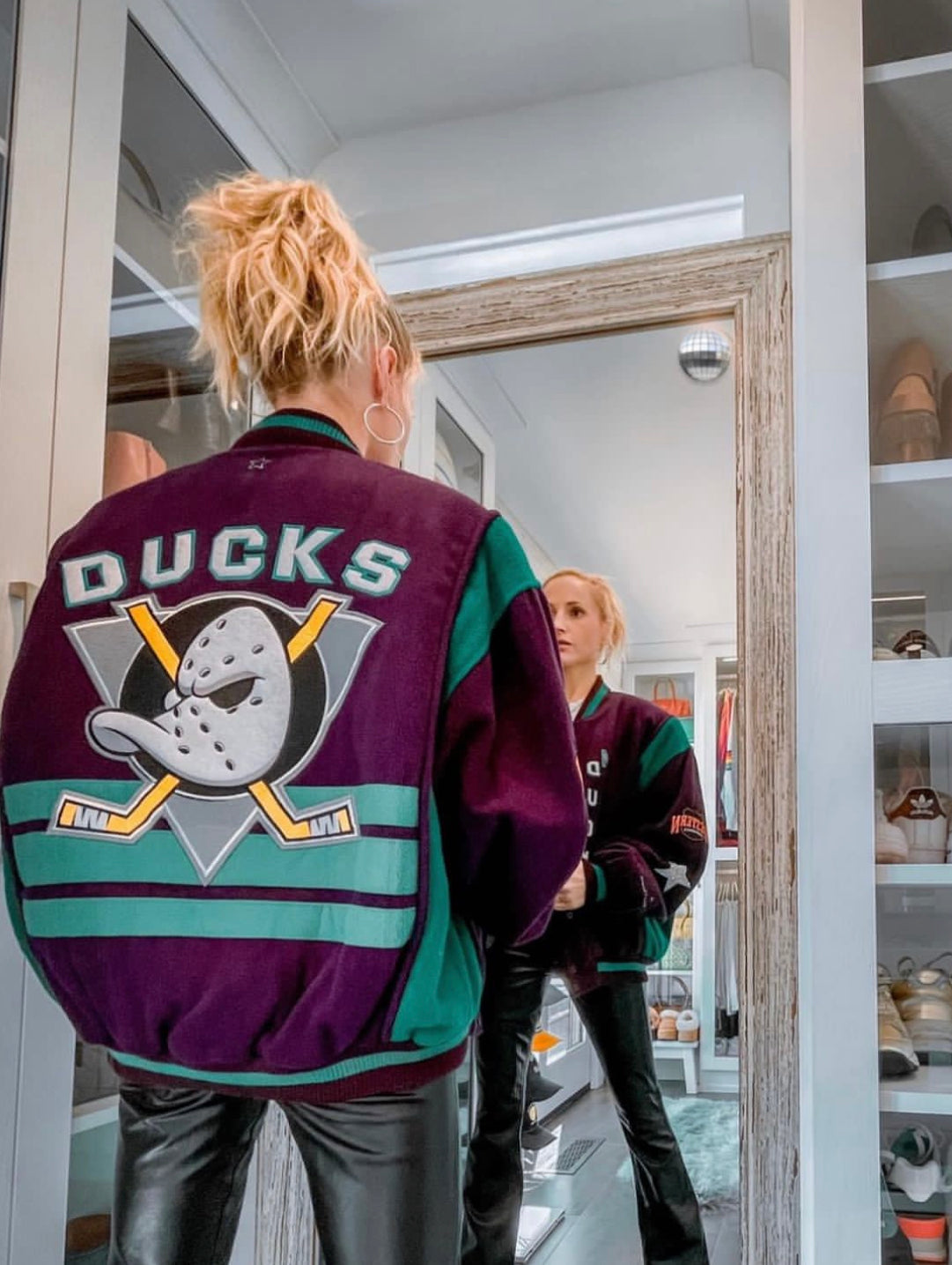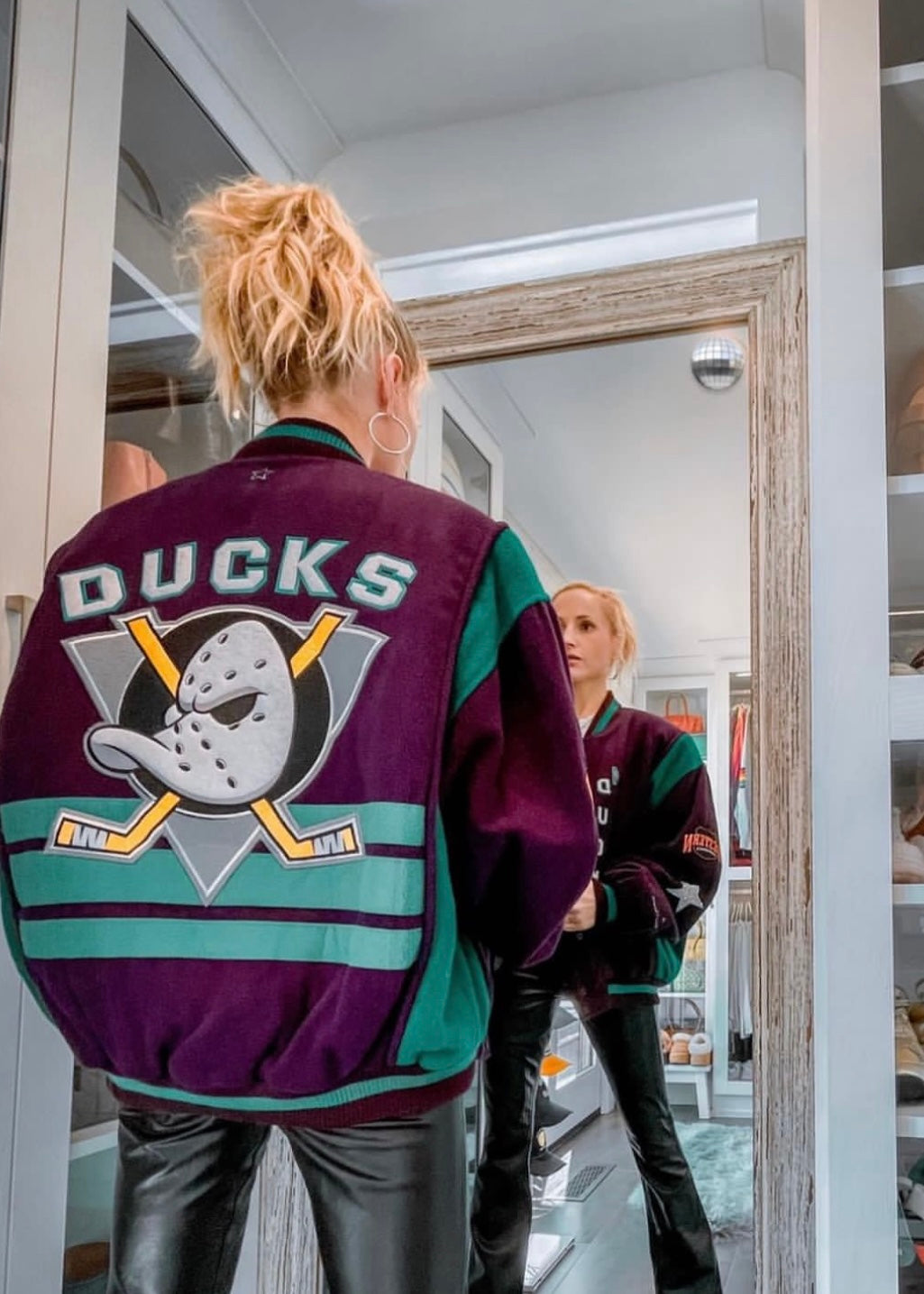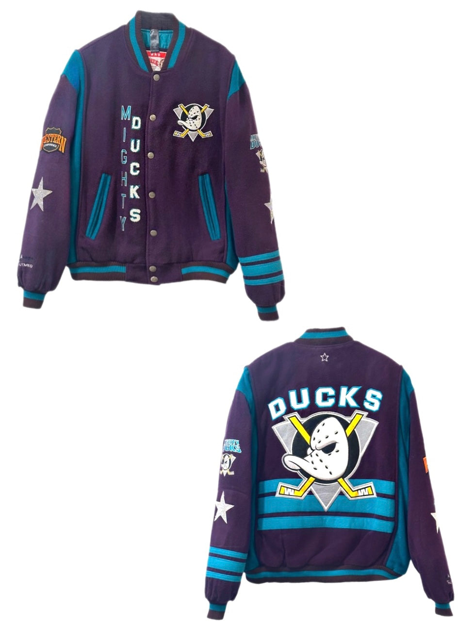 Anaheim Ducks, Mighty Ducks Hockey, “Rare Find” One of a Kind Vintage Letterman Jacket with Crystal Star
