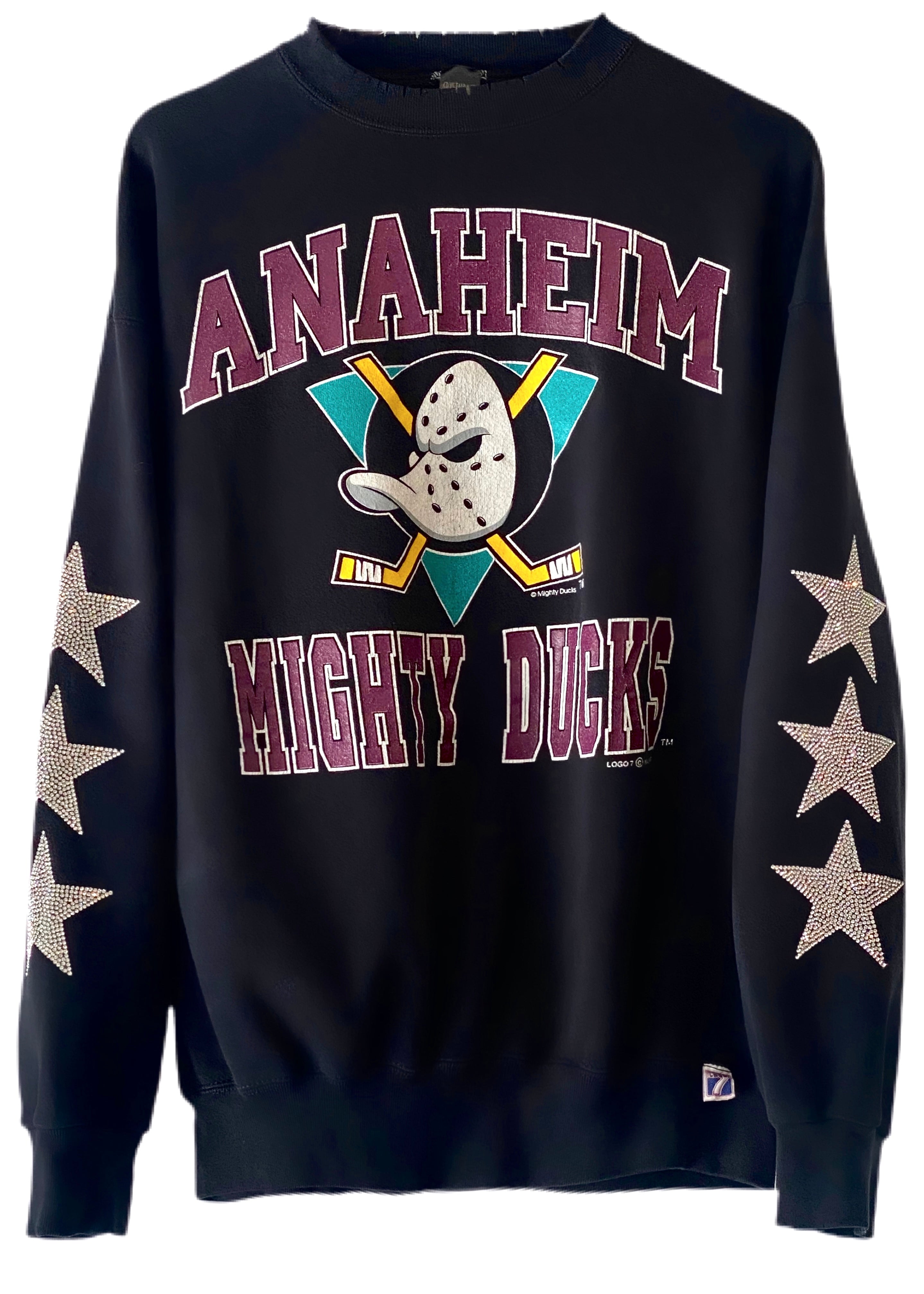 Anaheim Ducks, Hockey One of a KIND Vintage “Mighty Ducks” Sweatshirt with Three Crystal Star Design