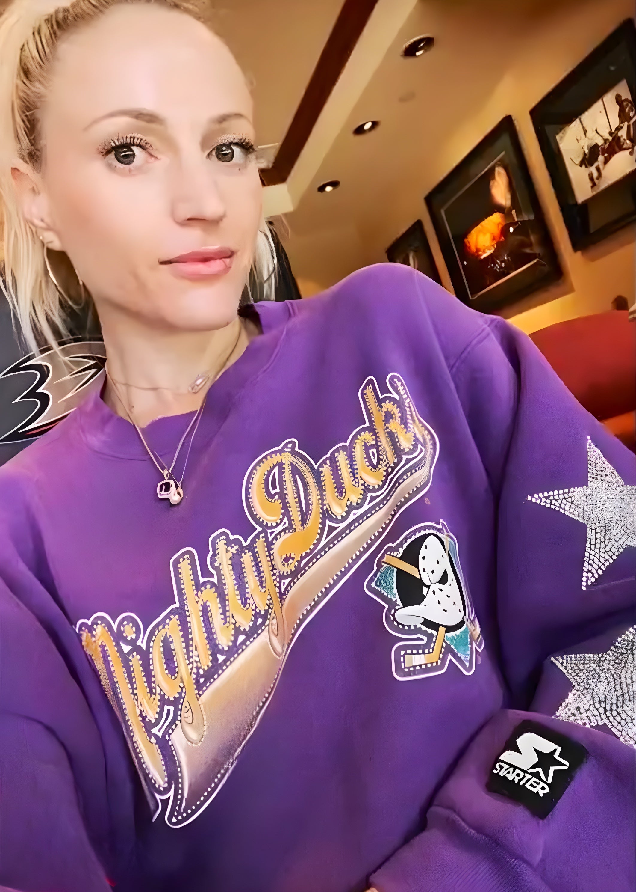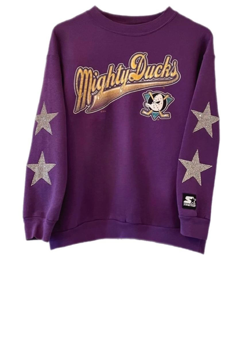 Anaheim Ducks, Hockey One of a KIND Vintage “Mighty Ducks” Sweatshirt with Crystal Star Design.