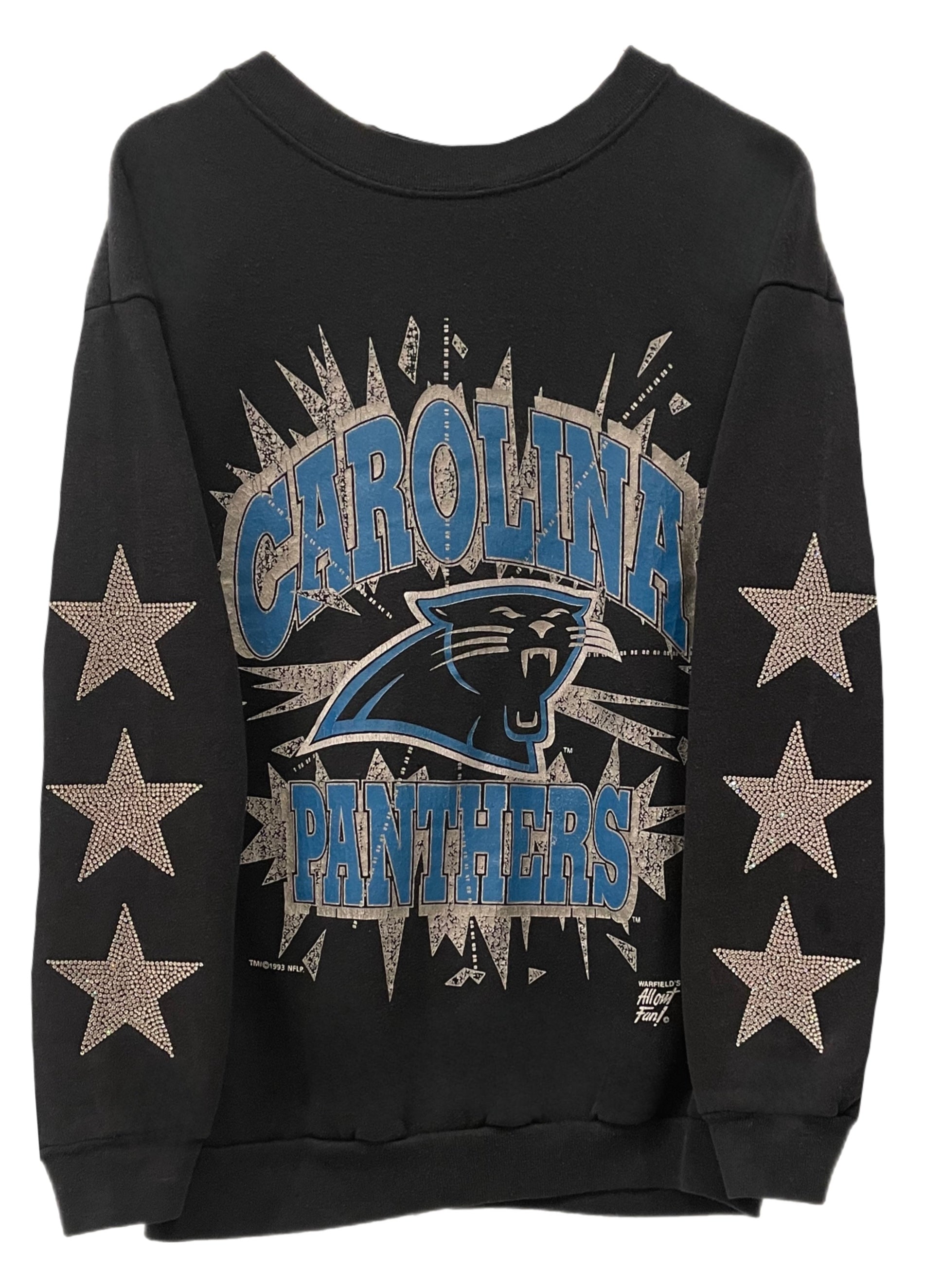 Carolina Panthers, Football One of a KIND Vintage Sweatshirt with Three Crystal Star Design