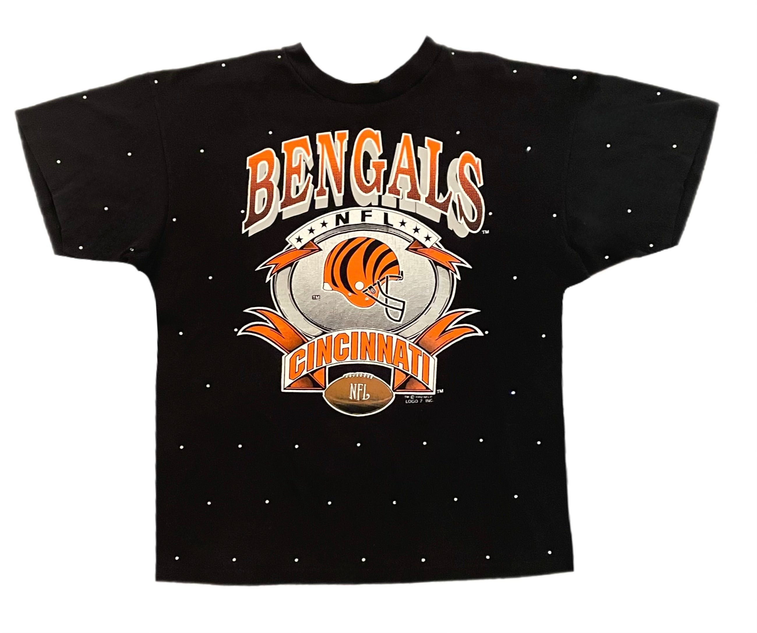 Cincinnati Bengals, Football One of a KIND Tee with All Over Crystal Design